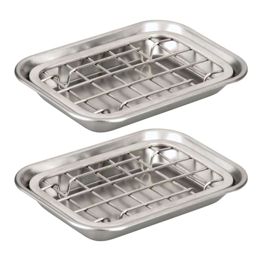 mDesign Kitchen Soap Dish Tray - Drainage Grid & Holder, 2 Pack