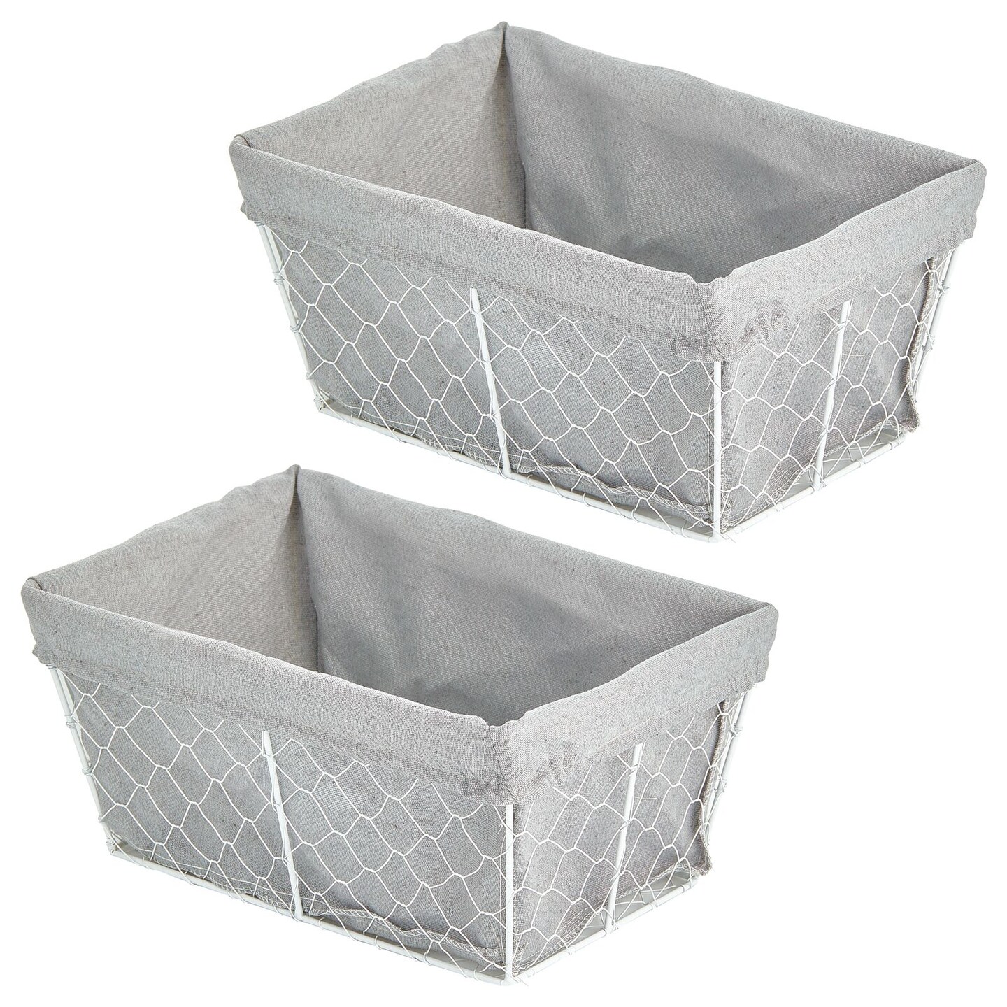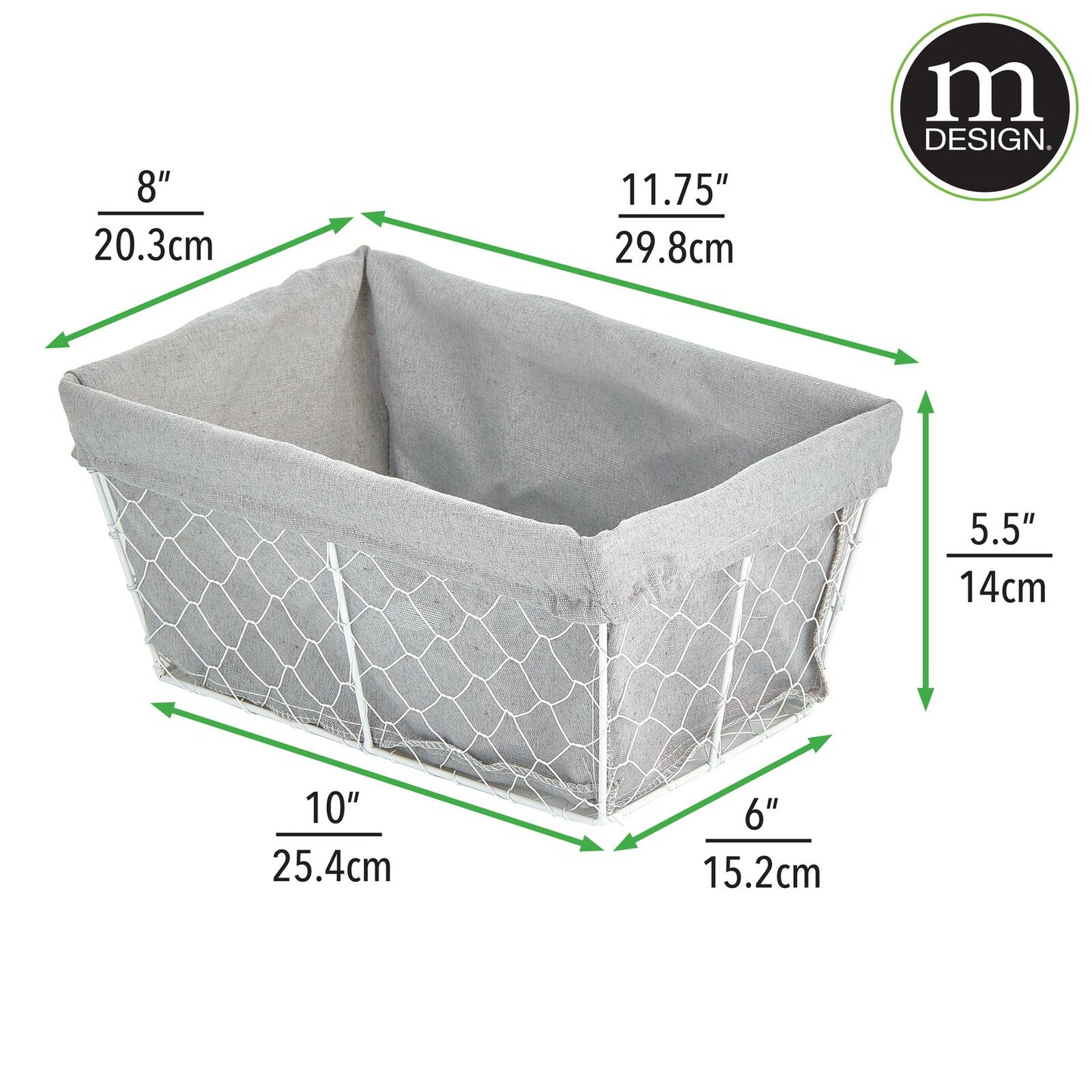 mDesign Medium Chicken Wire Storage Basket, Fabric Liner, 2 Pack, White/Gray