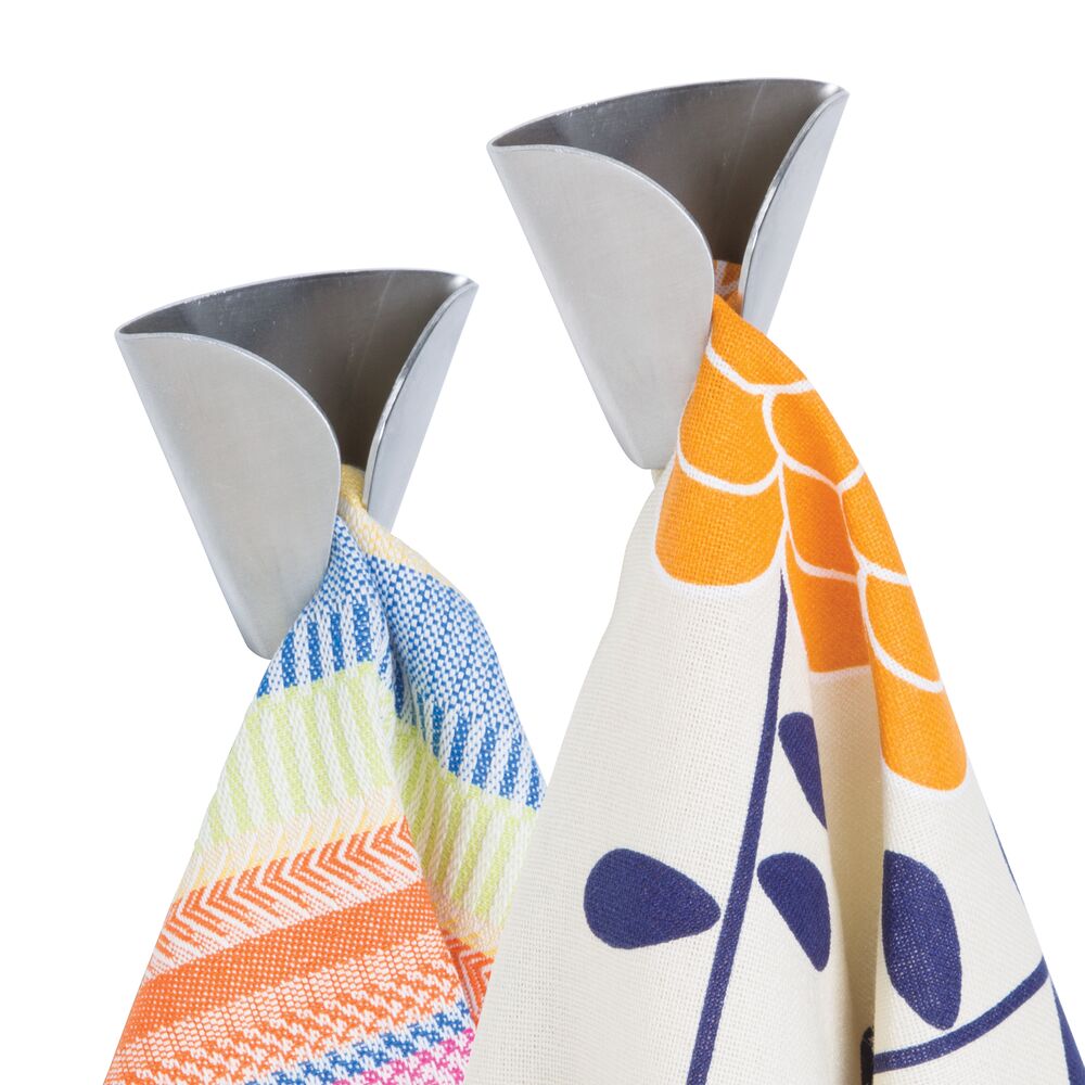 mDesign Metal Adhesive Wall Mount Kitchen Hand Towel Hanger, 2 Pack - Brushed