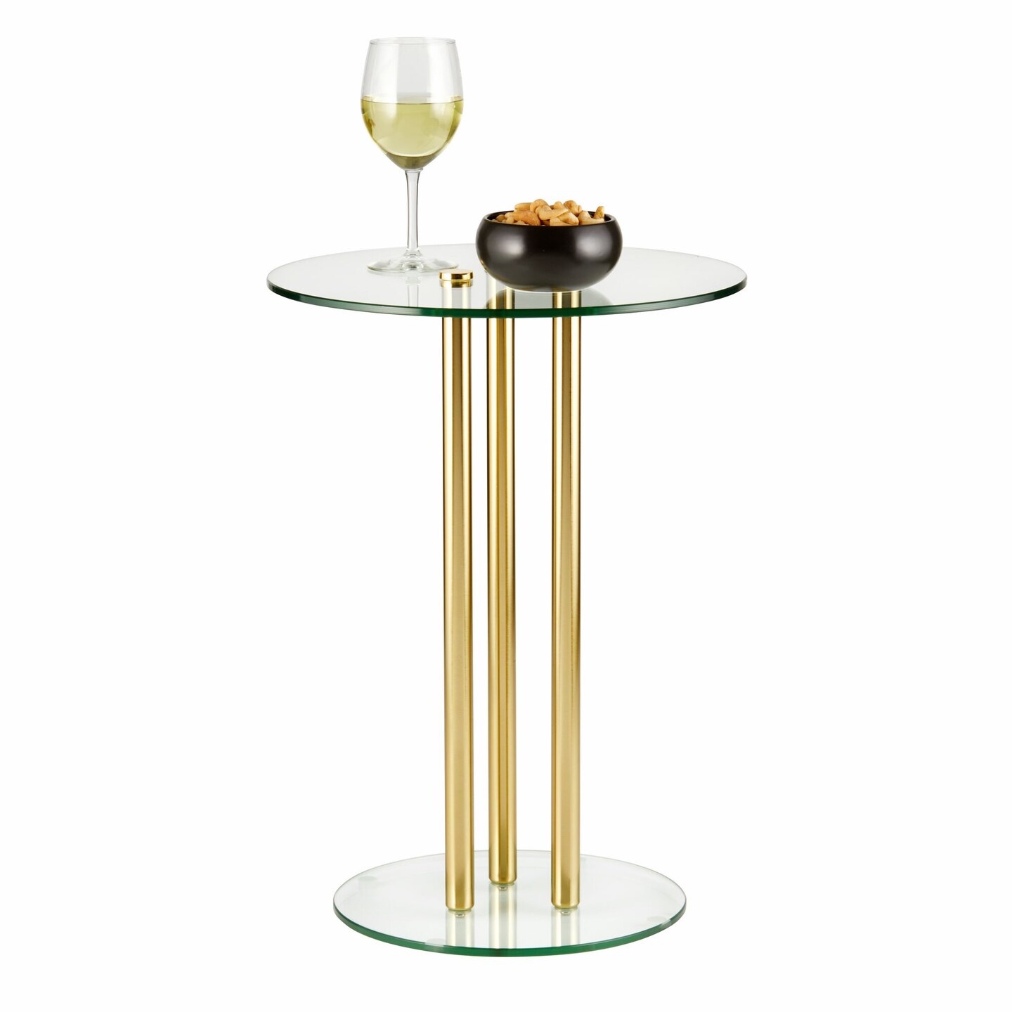 mDesign Metal and Glass Top 16" Round Accent Side/End Drink Table - Clear/Brass