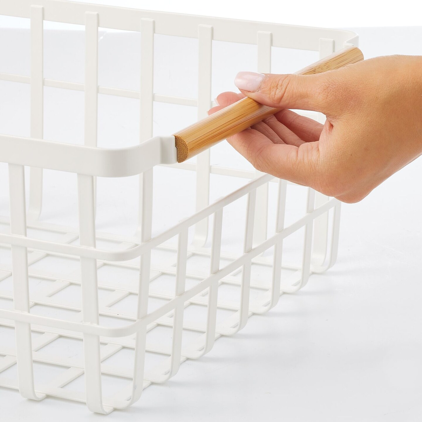 mDesign Metal Food Organizer Storage Bins with Bamboo Handles