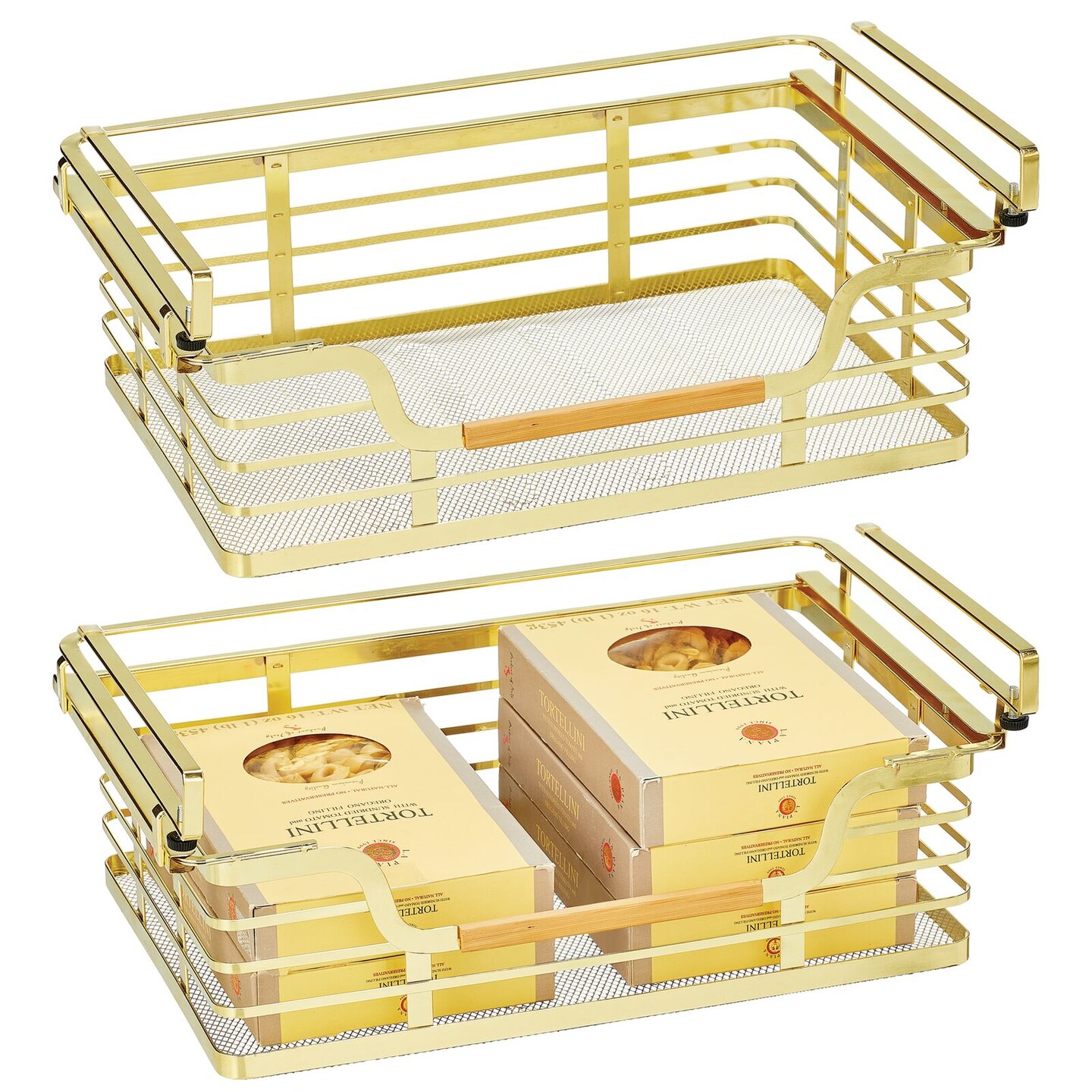mDesign Metal Kitchen Under Shelf Storage Baskets - 2 Pack