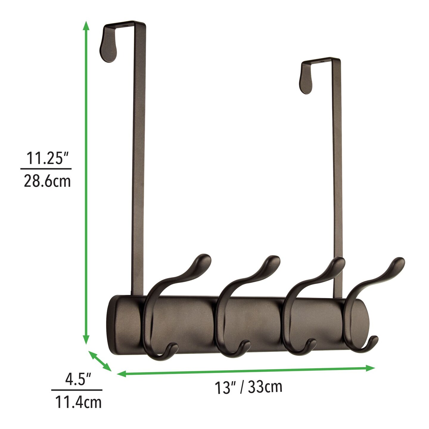mDesign Metal Over Door Hanging Storage Organizer Rack with Hooks
