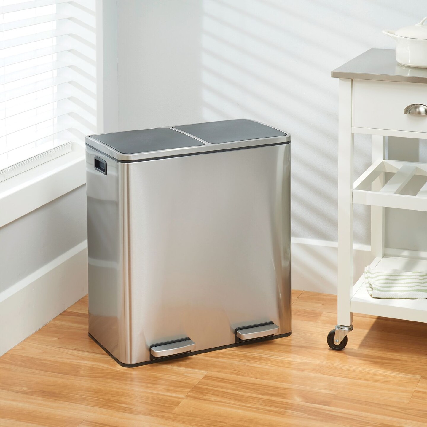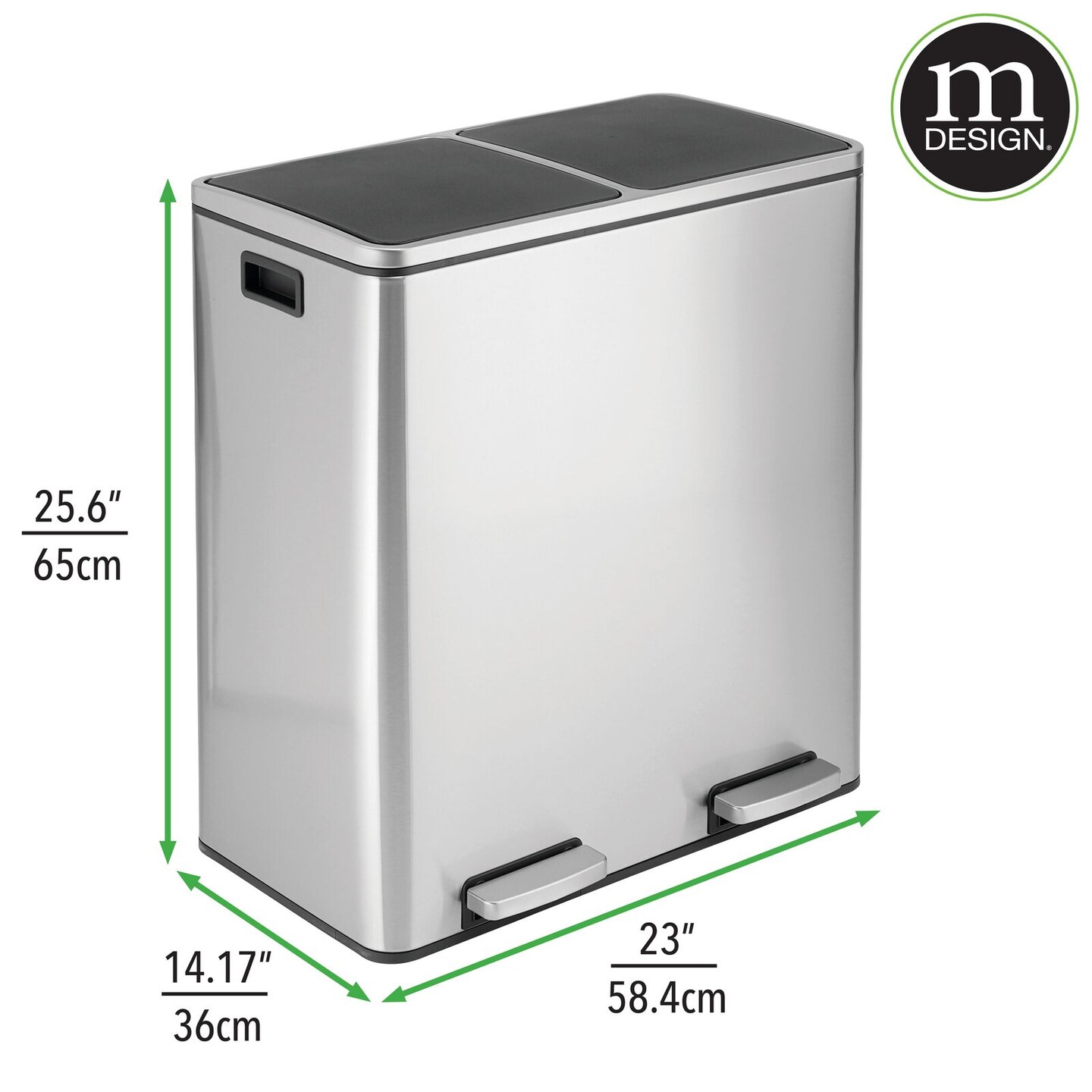 mDesign Metal Steel 60-Liter Large Dual Compartment Step Trash Can