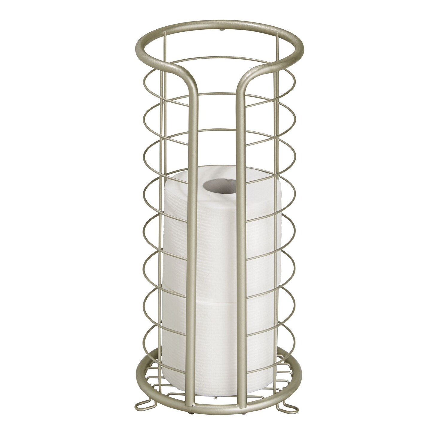 mDesign Metal Toilet Paper Holder Stand, Freestanding 3 Roll Reserve