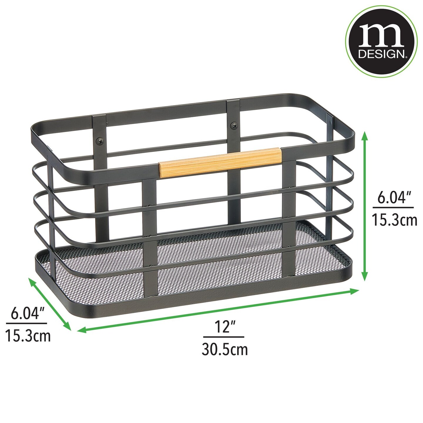 mDesign Metal Wire Wall Mount Kitchen Storage Bin Basket, Matte Black/Natural