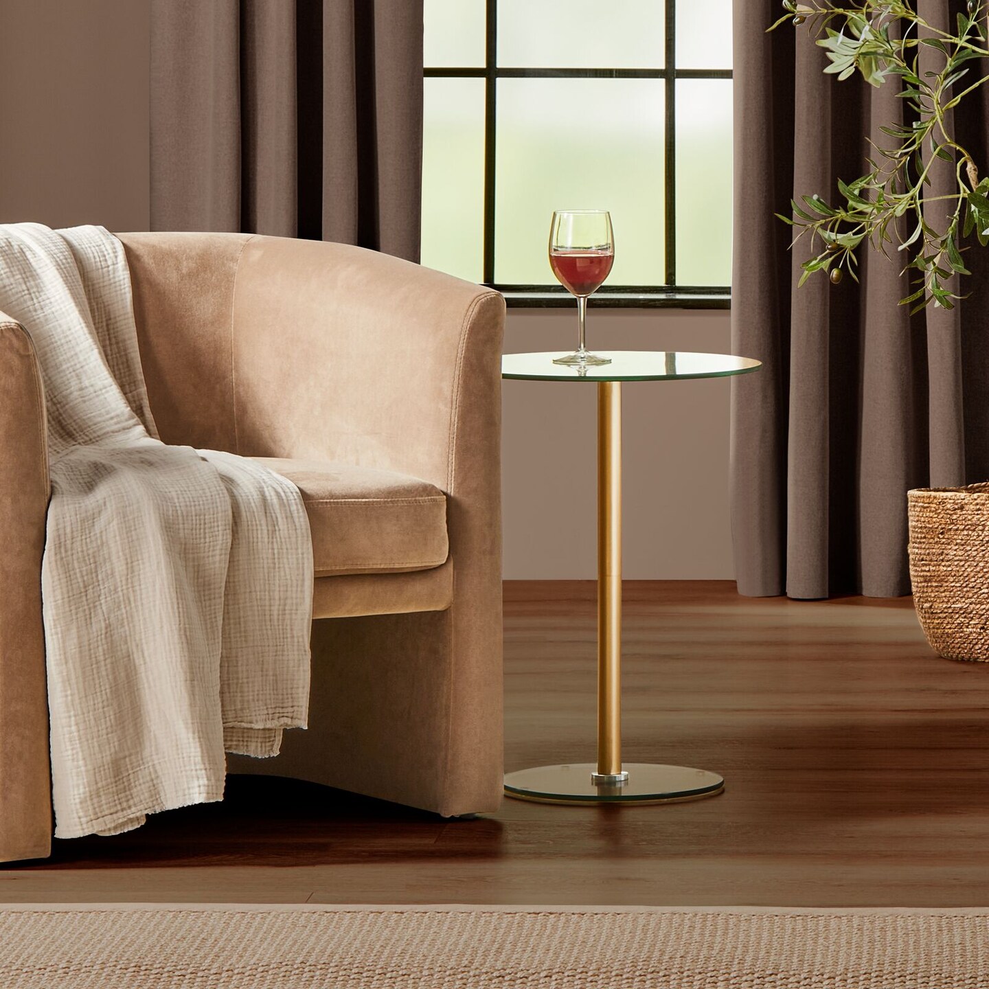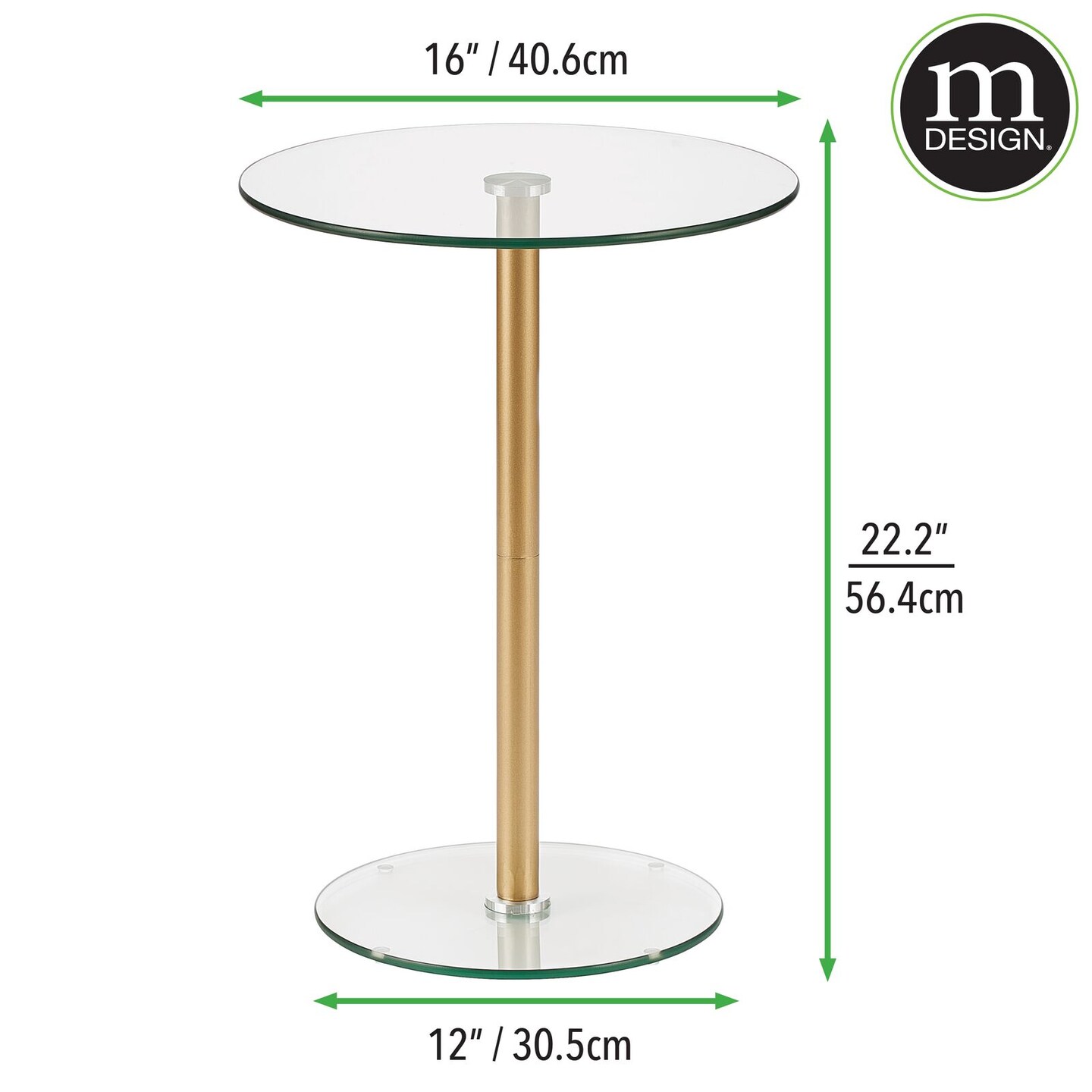 mDesign Metal/Glass Top Round Accent Side/End Drink Table Furniture
