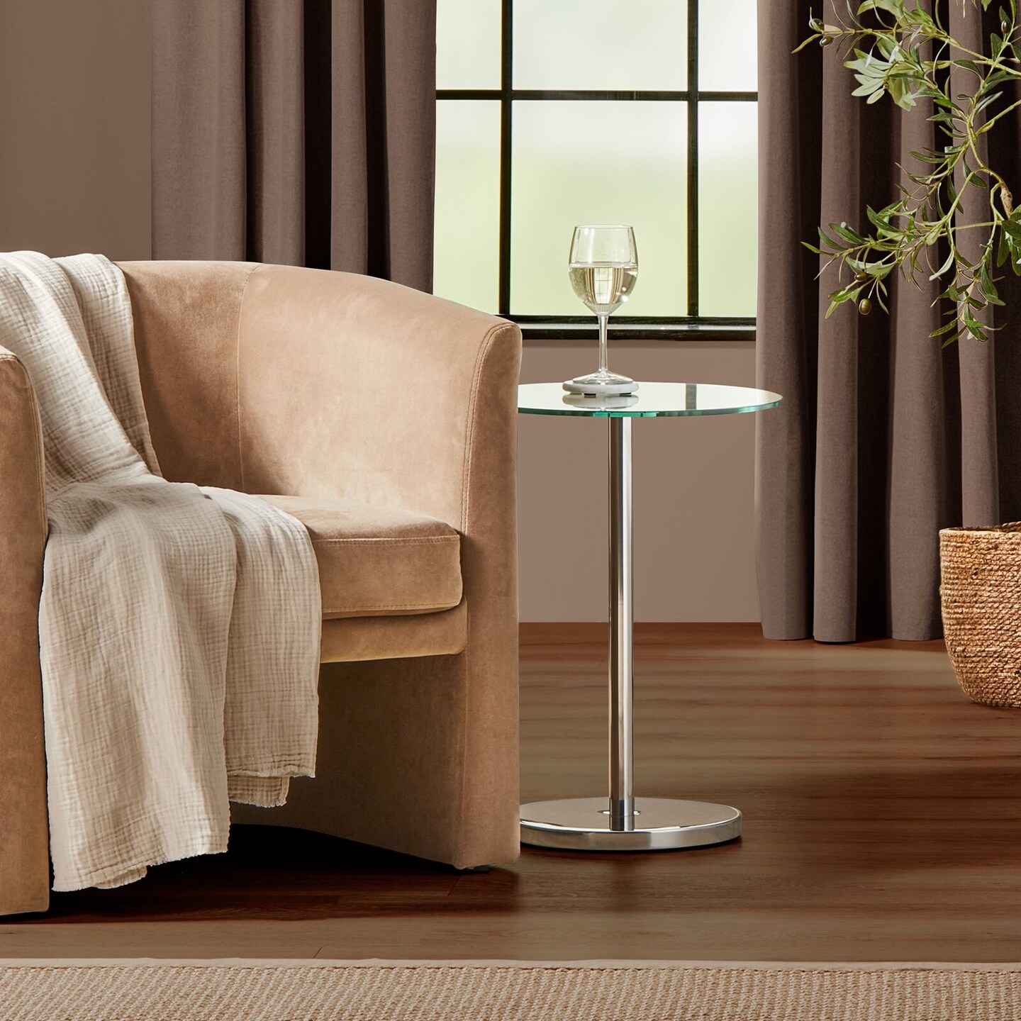 mDesign Metal/Glass Top Round Accent Side/End Drink Table Furniture
