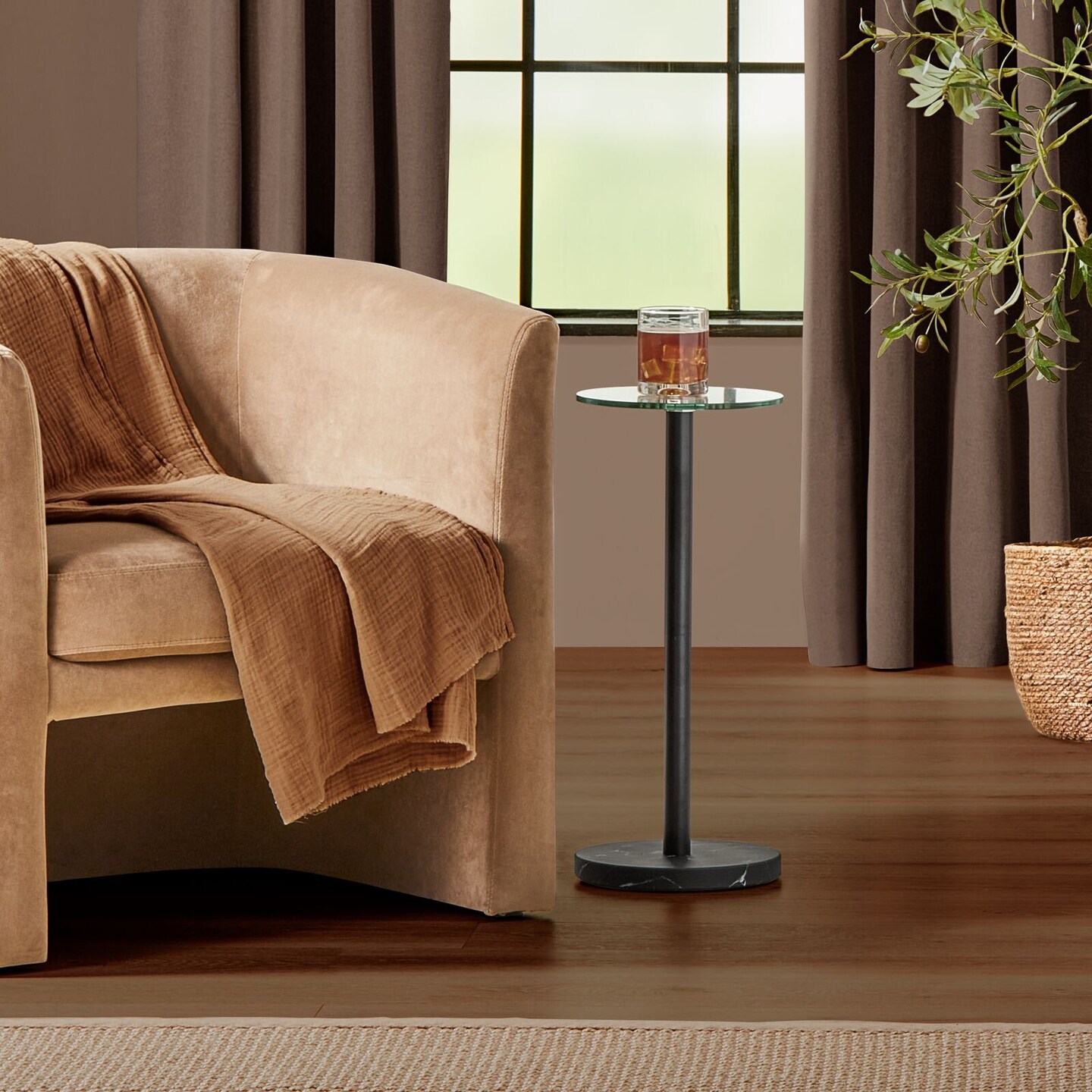 mDesign Metal/Glass Top Round Accent Side/End Drink Table Furniture