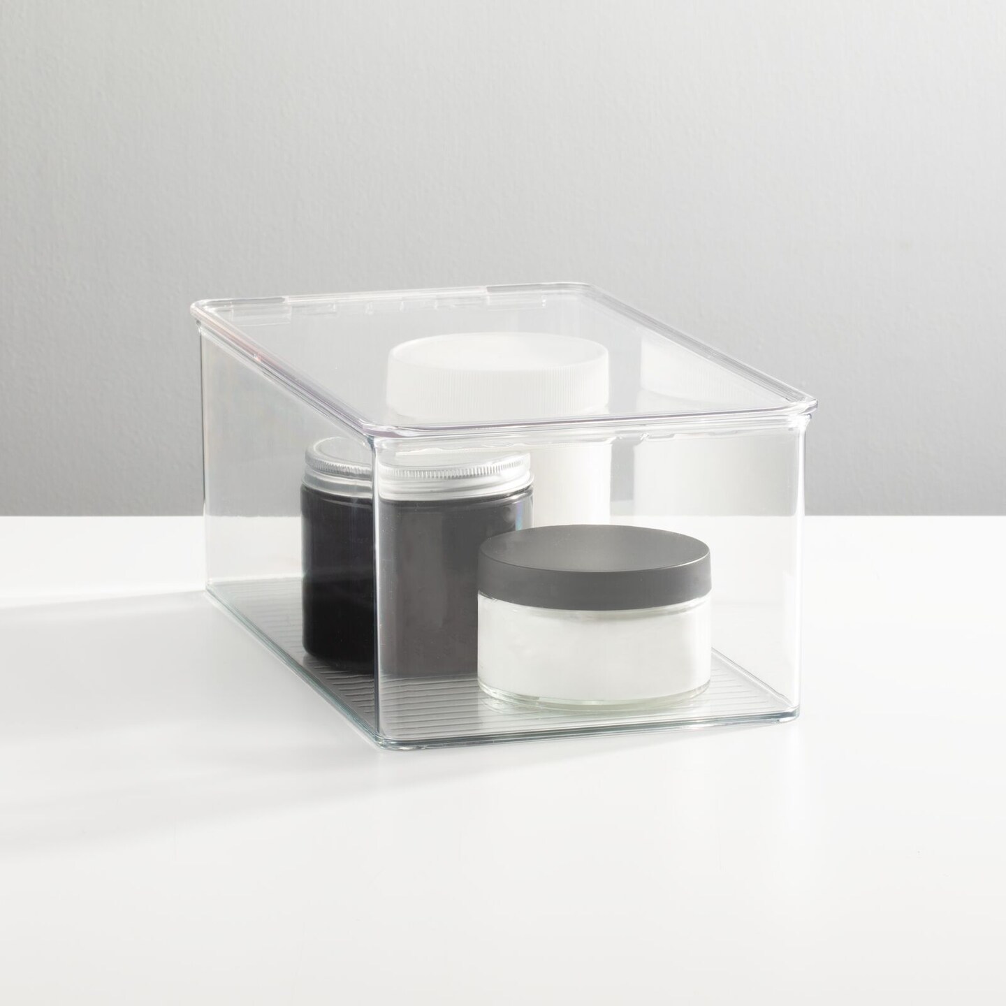mDesign Plastic Bathroom Storage Organizer Bin Box with Hinge Lid