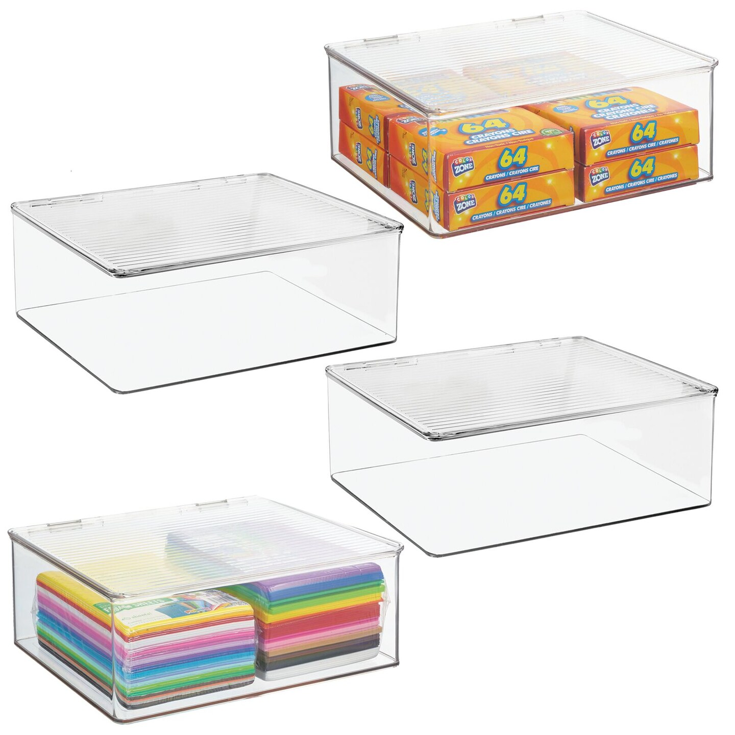 mDesign Plastic Craft Room Stackable Storage Box with Hinge Lid, 4 Pack, Clear