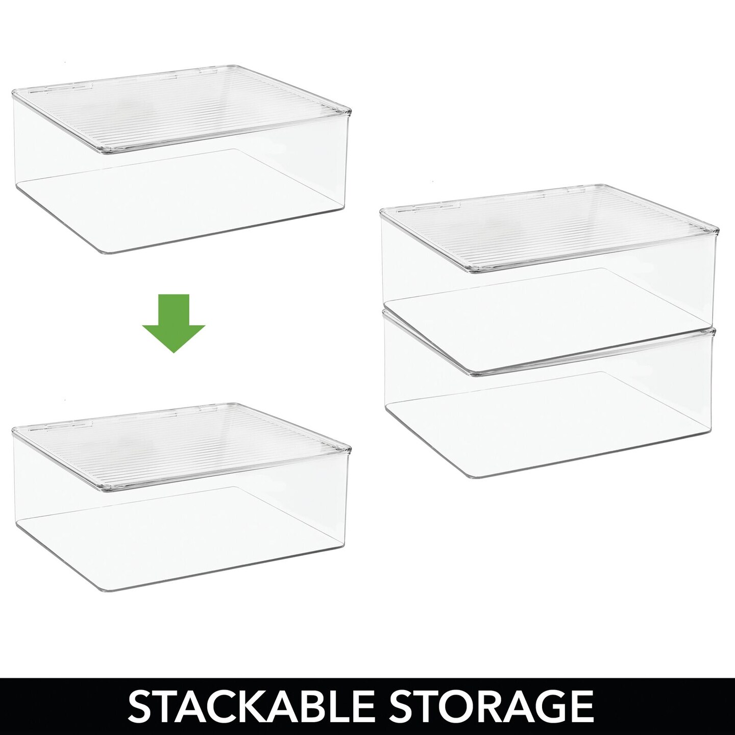 mDesign Plastic Craft Room Stackable Storage Box with Hinge Lid, 8 Pack, Clear