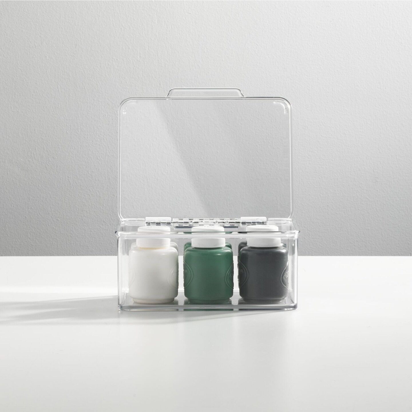 mDesign Plastic Craft Room Storage Organizer Box with Hinged Lid, 8 Pack, Clear