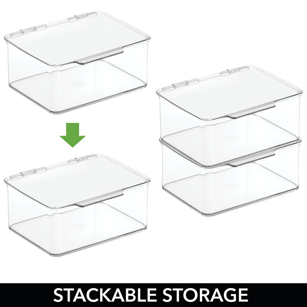 mDesign Plastic Home Office Desk Storage Organizer Bin Box with Hinge Lid, Clear