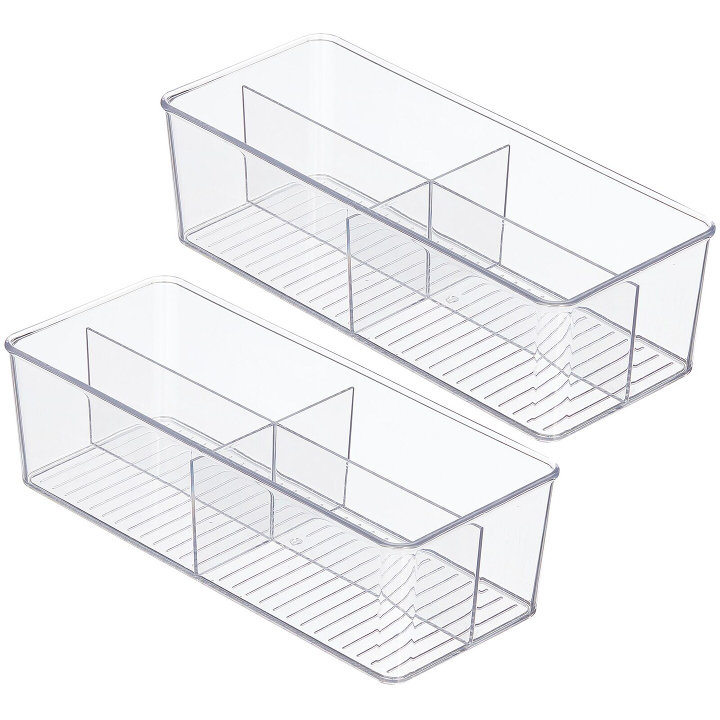 mDesign Plastic Kitchen Cabinet Divided Storage Organizer Bin