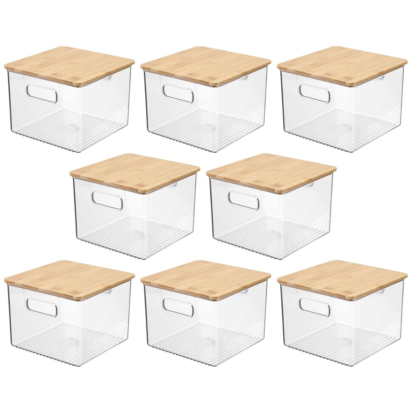 mDesign Plastic Kitchen Storage Box - Bamboo Lid, Handles