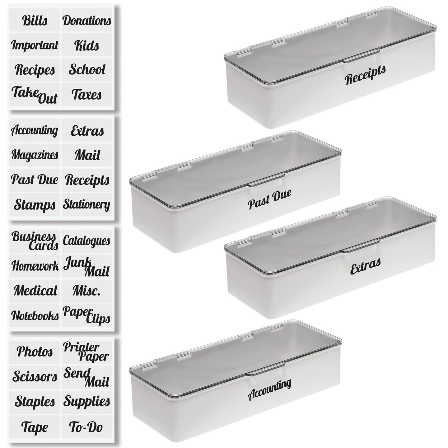 mDesign Plastic Stackable Home, Office Storage Box, 4 Pack + 32 Labels