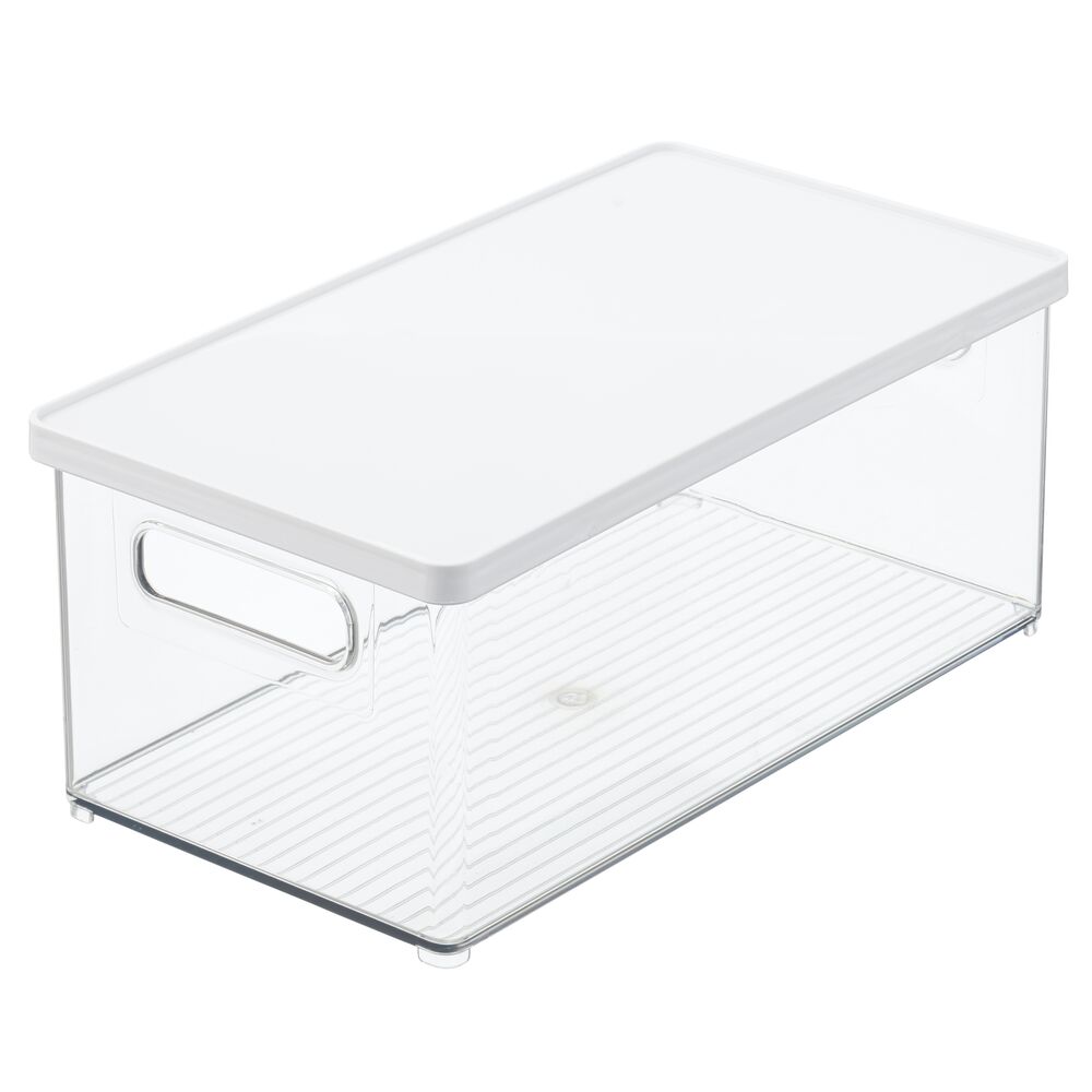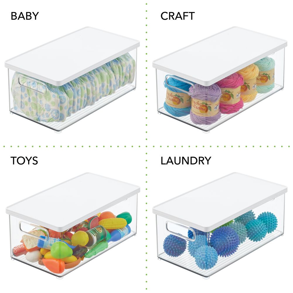 mDesign Plastic Storage Bin Box Container, Lid and Built-In Handles