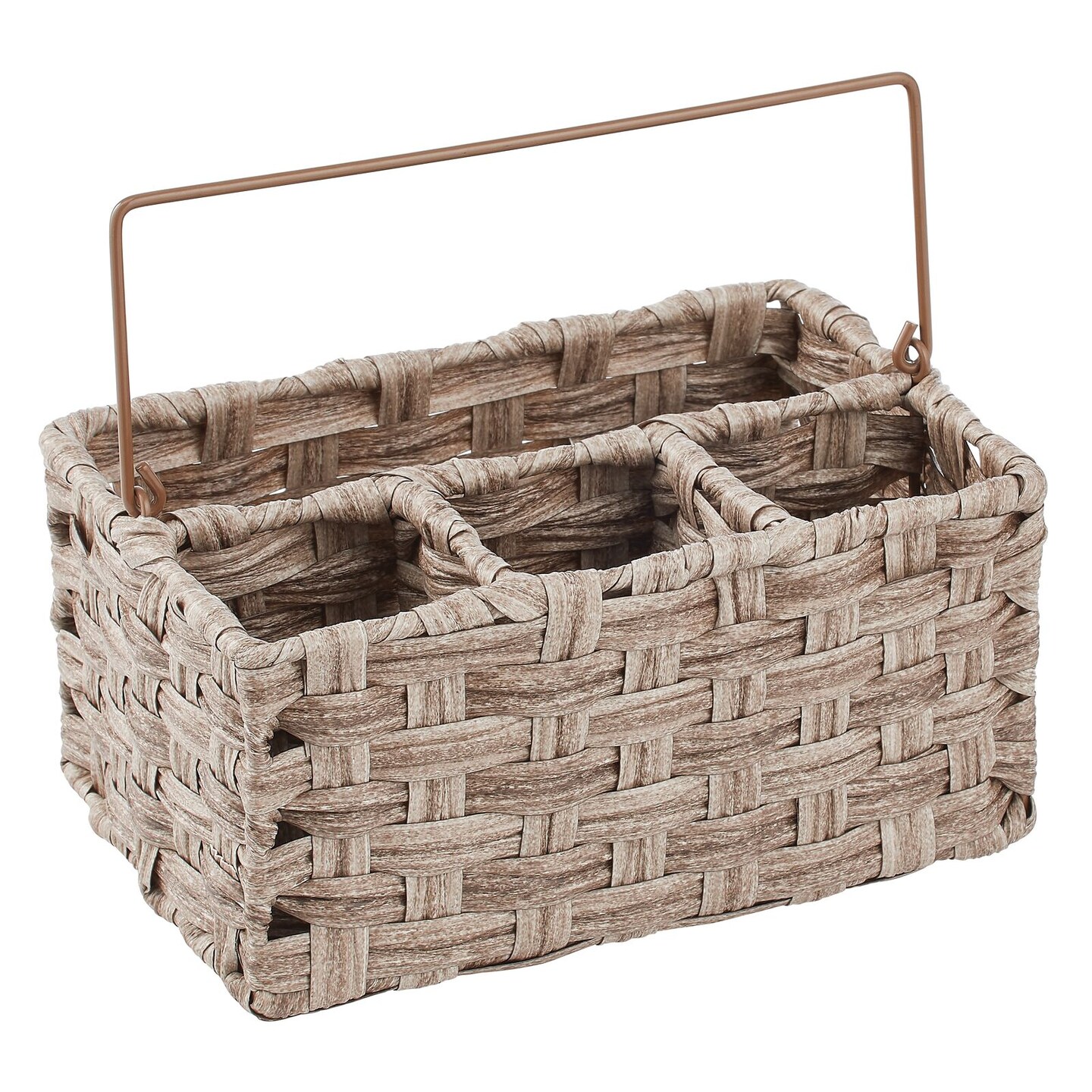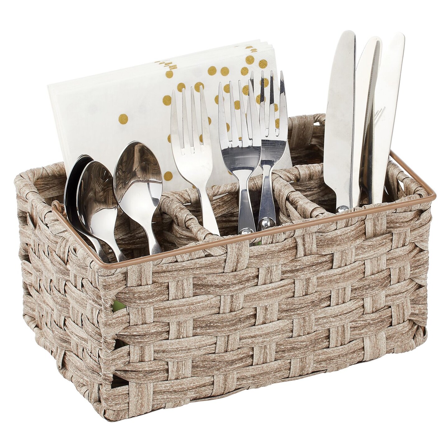 mDesign Plastic Woven Divided Cutlery Storage Organizer Caddy Tote