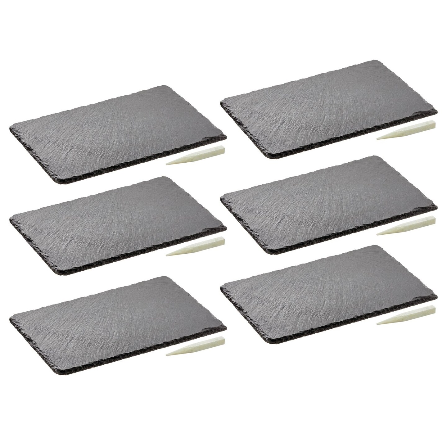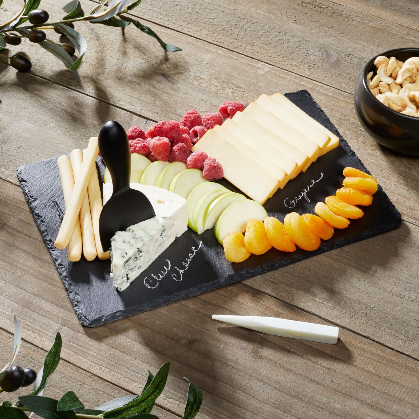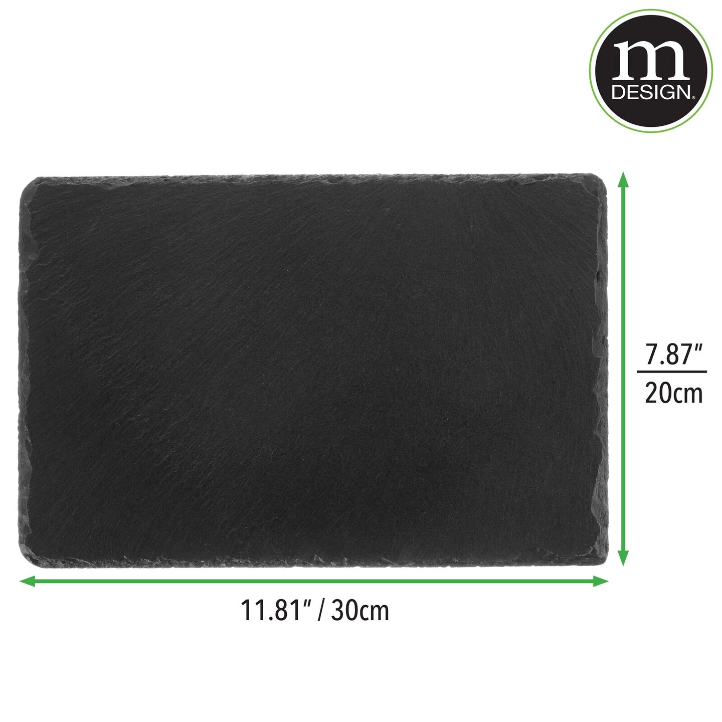 mDesign Slate Stone Serving Tray and Chalk Pencil, Food Board