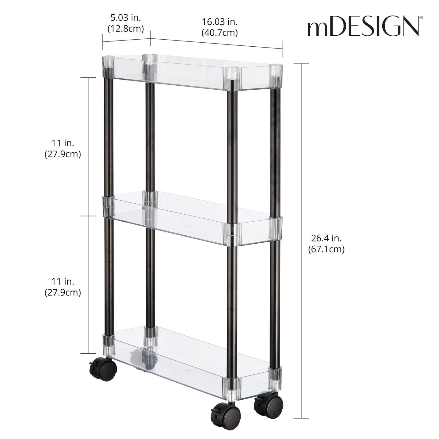 mDesign Slim 3-Tier Portable Household Rolling Cart with Wheels