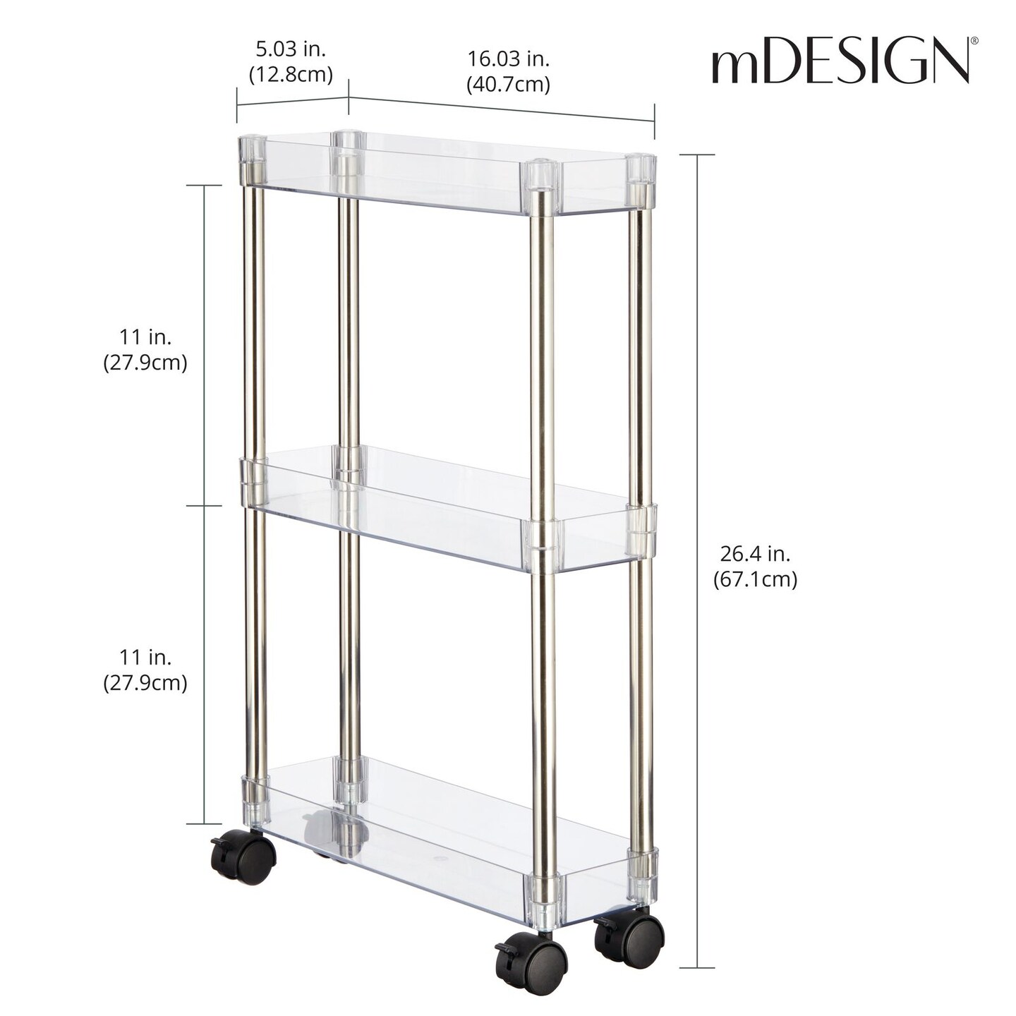 mDesign Slim 3-Tier Portable Household Rolling Cart with Wheels