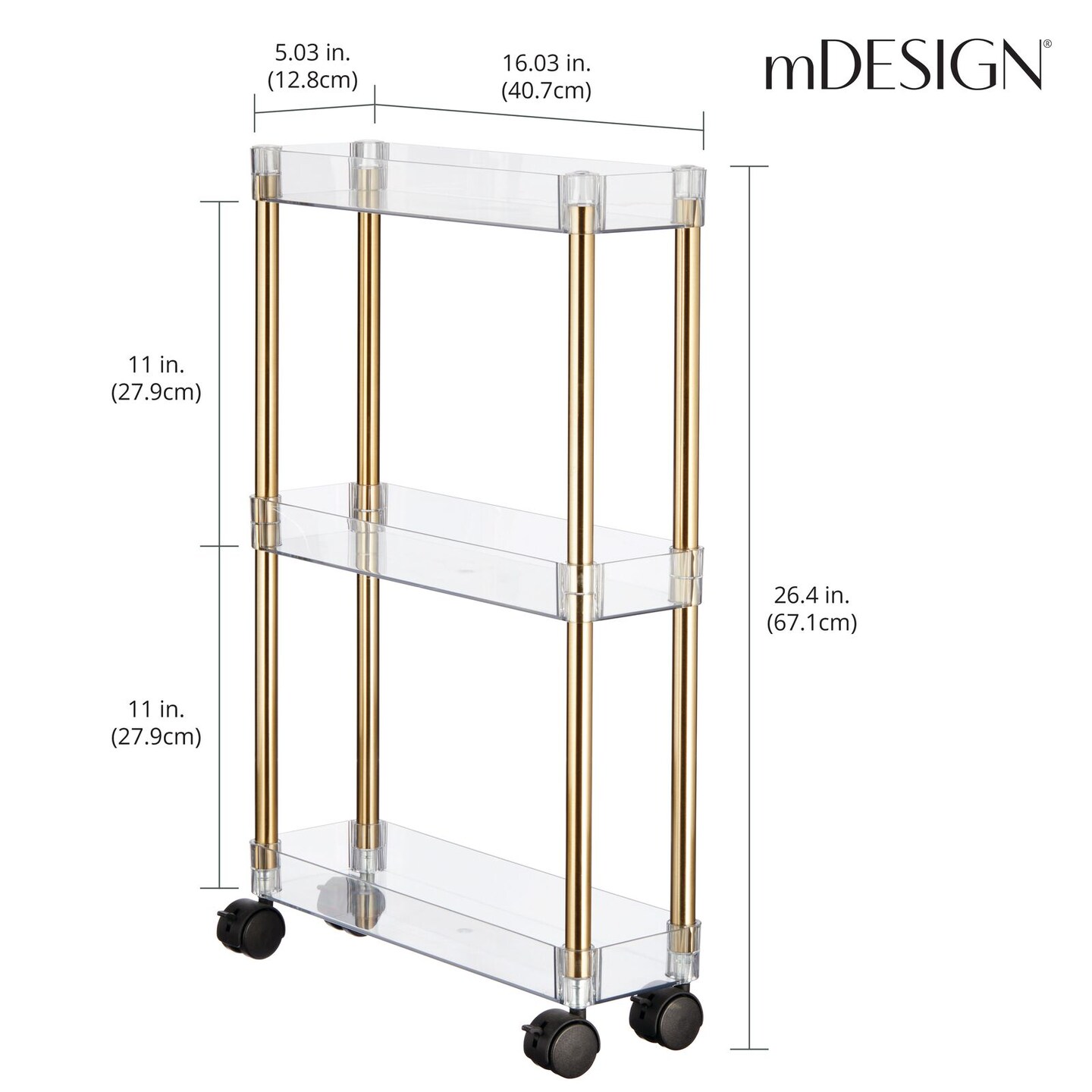 mDesign Slim 3-Tier Portable Household Rolling Cart with Wheels