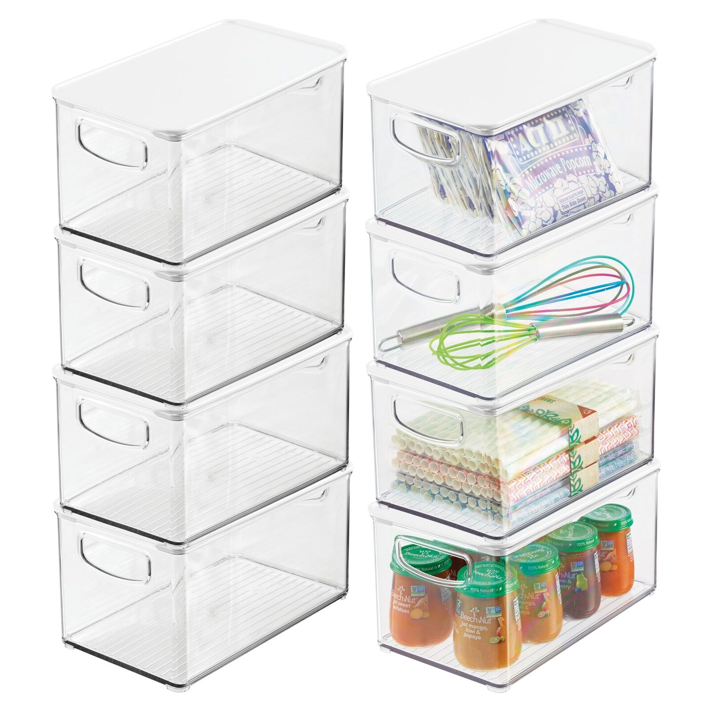 mDesign Slim Plastic Kitchen Food Storage Bin, Lid/Handles, 8 Pack