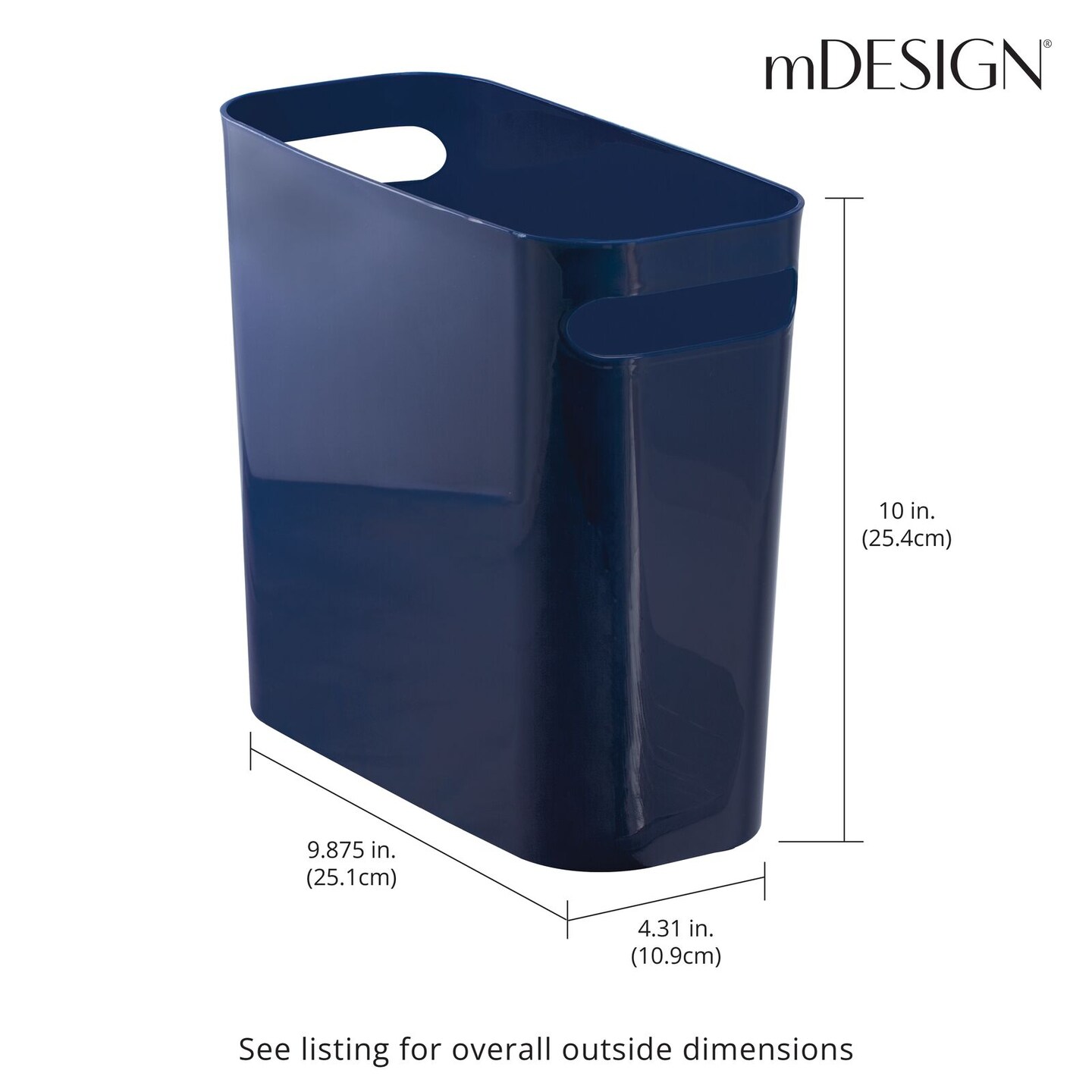 mDesign Slim Plastic Small Trash Can Wastebasket with Handles
