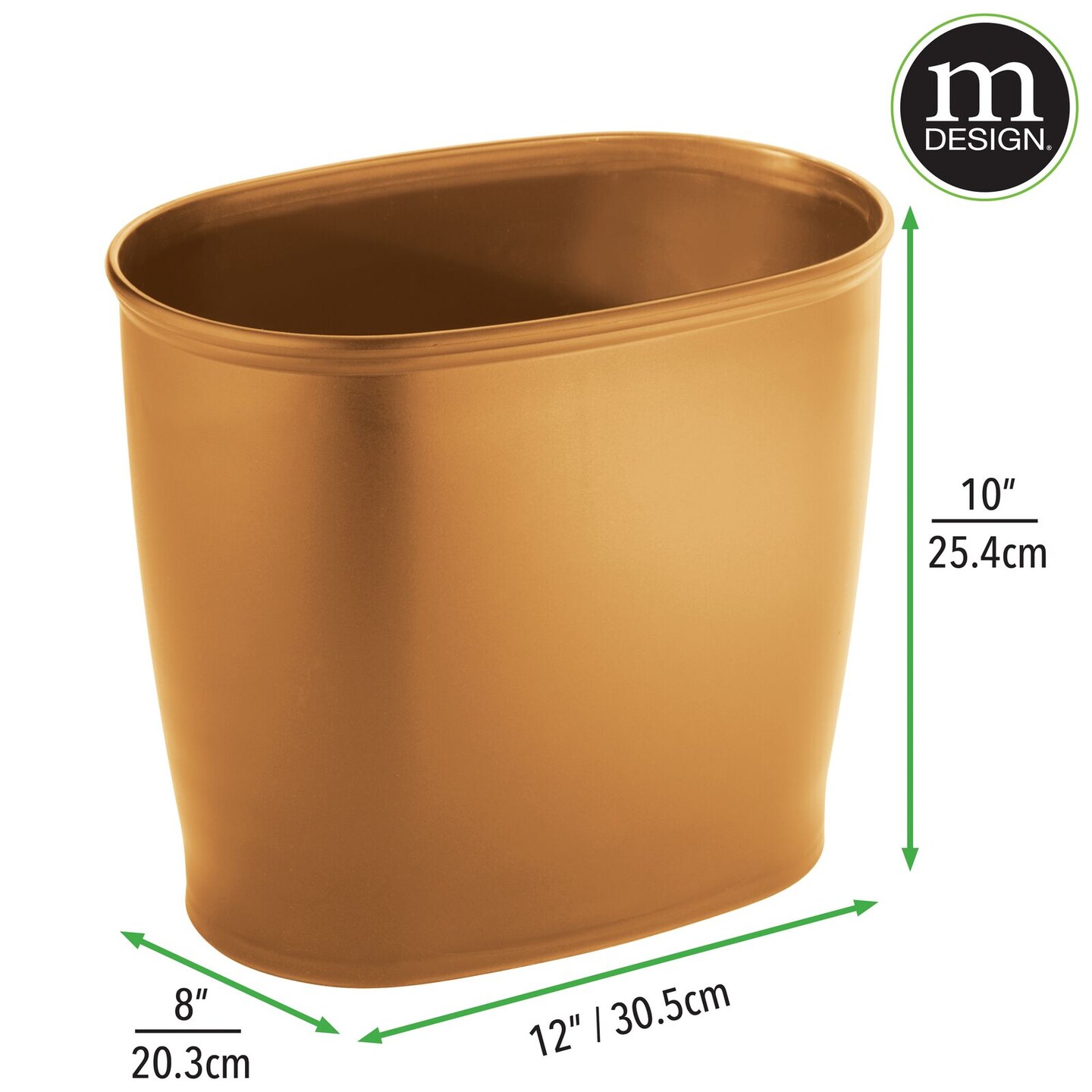 mDesign Small Plastic Oval Trash Can Garbage Wastebasket