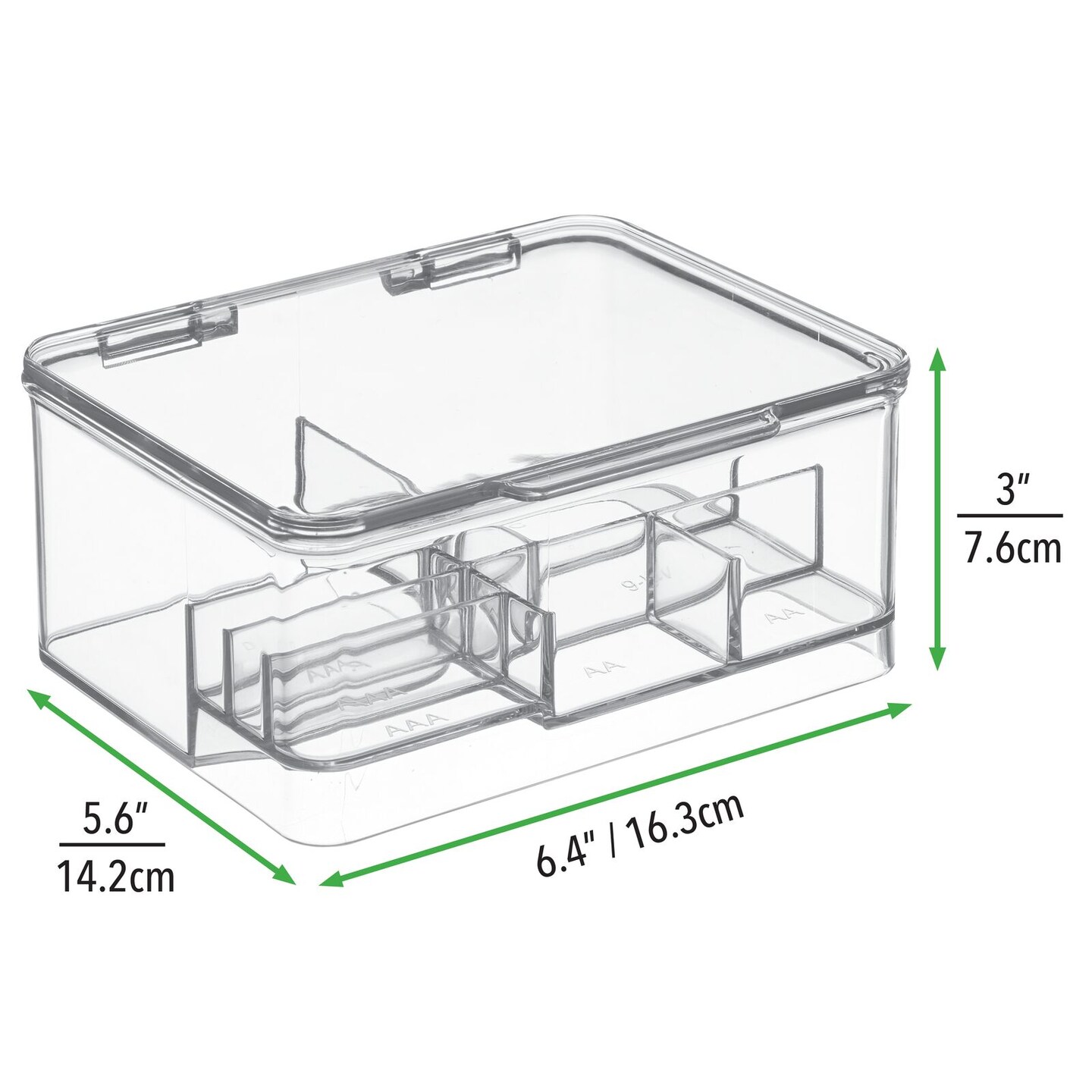 mDesign Stackable Divided Battery Storage Organizer Box - Clear