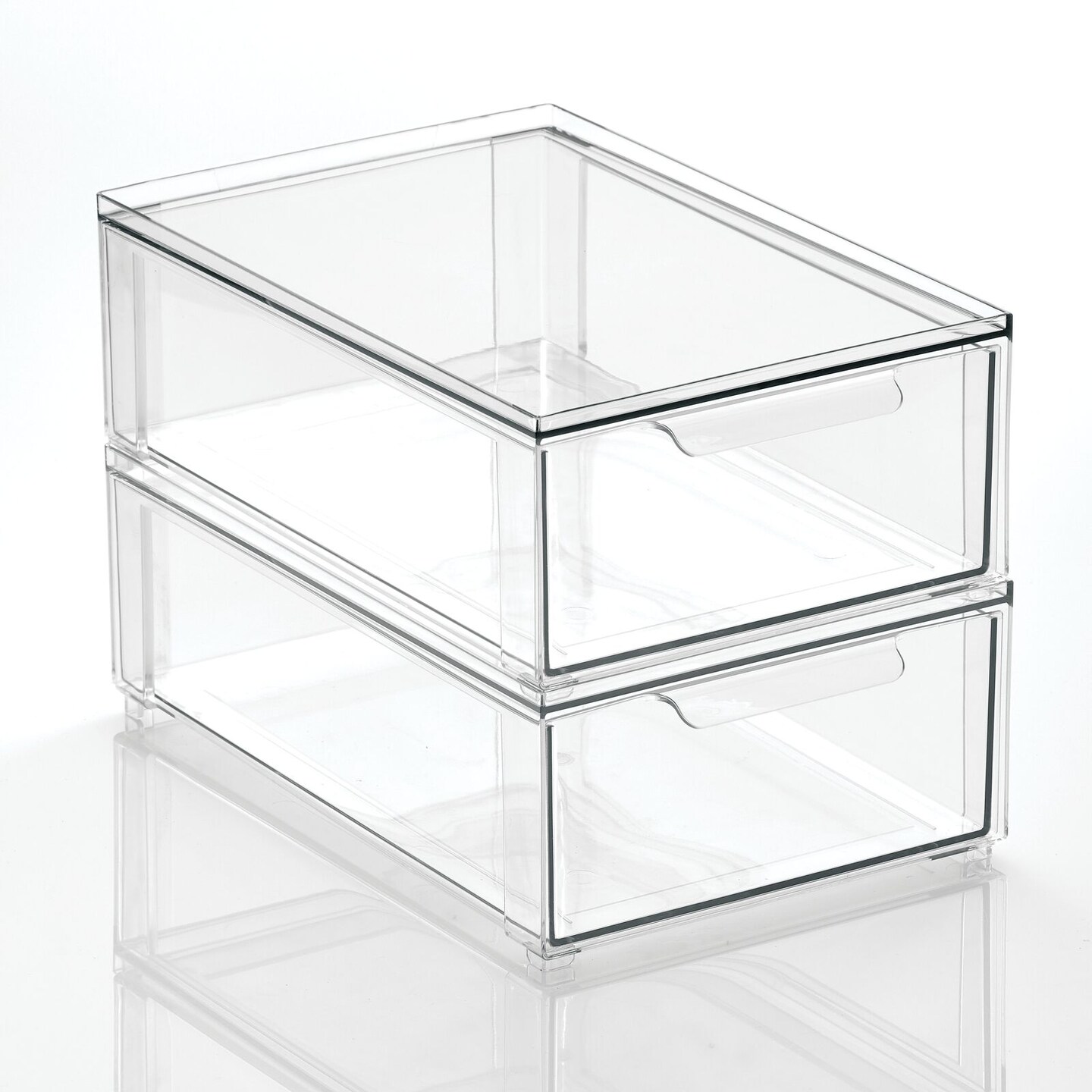 mDesign Stackable Kitchen Storage Bin Box with Pull-Out Drawer - Clear