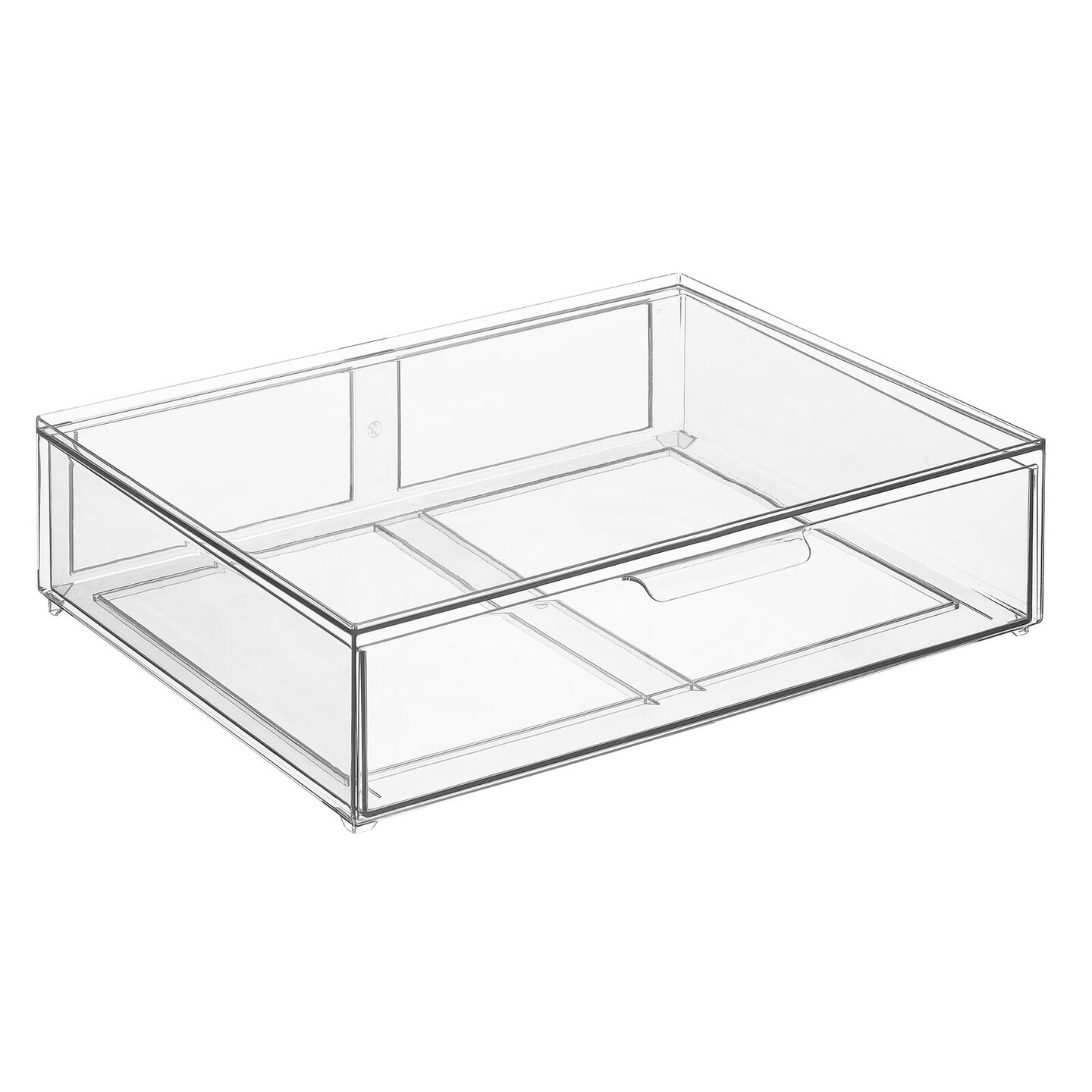 mDesign Stackable Kitchen Storage Bin Box with Pull-Out Drawer - Clear