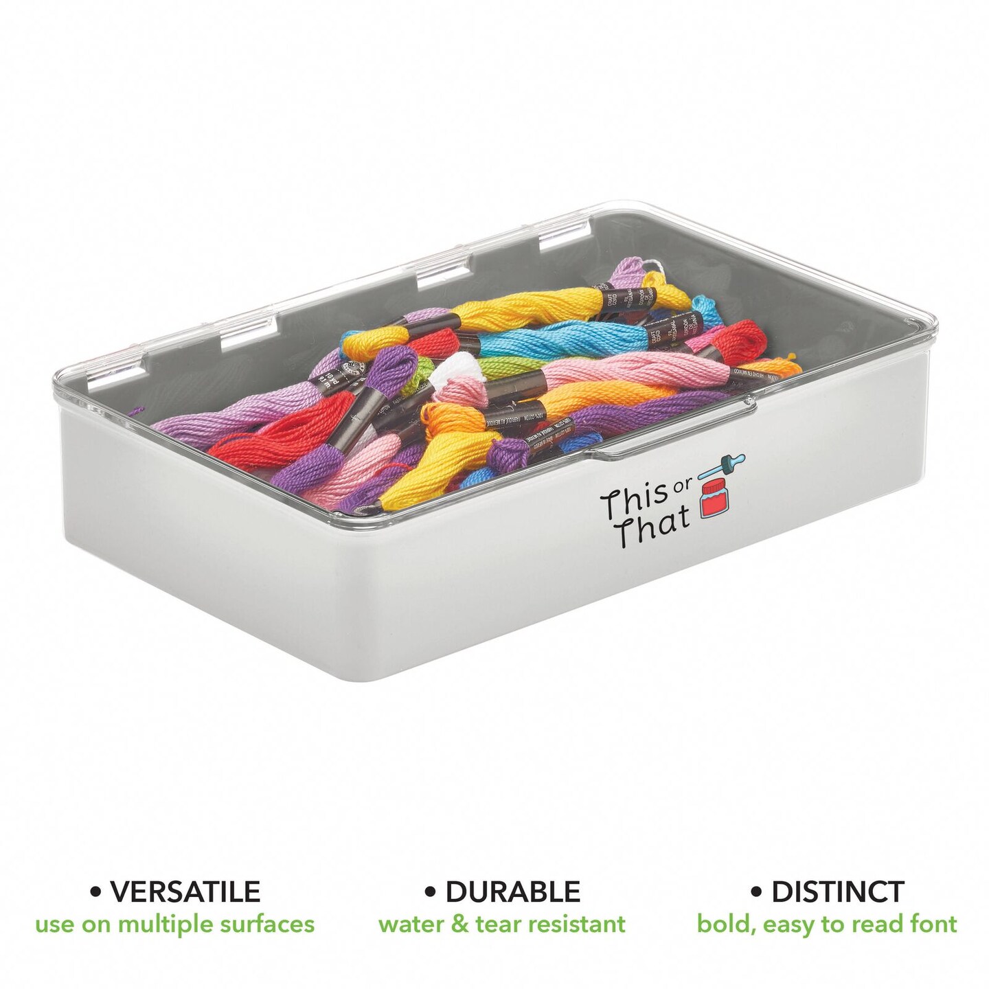 mDesign Stackable Plastic Craft, Sewing Storage Box, 2 Pack + 32 Labels