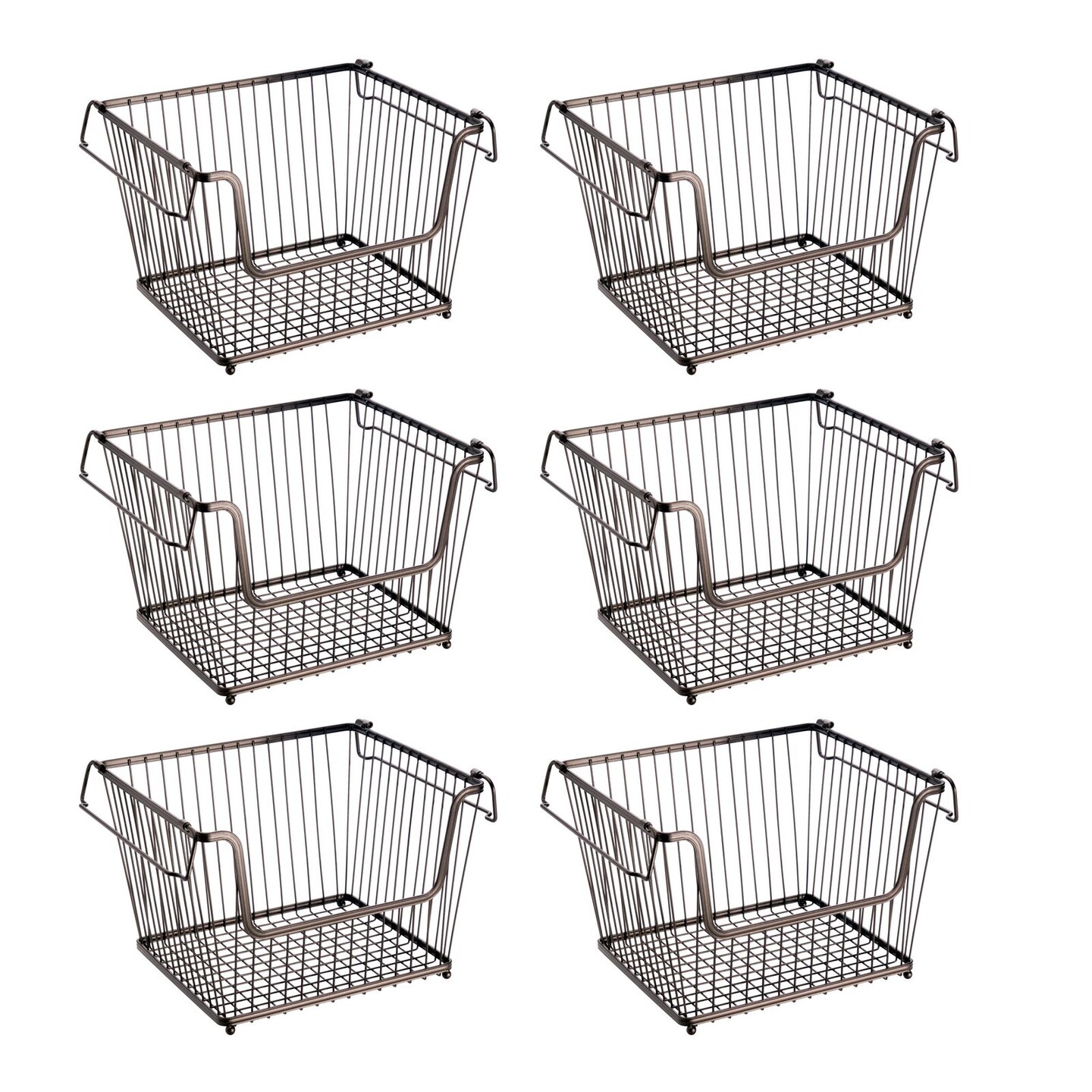 mDesign Stackable Storage Basket with Handles, 6 Pack