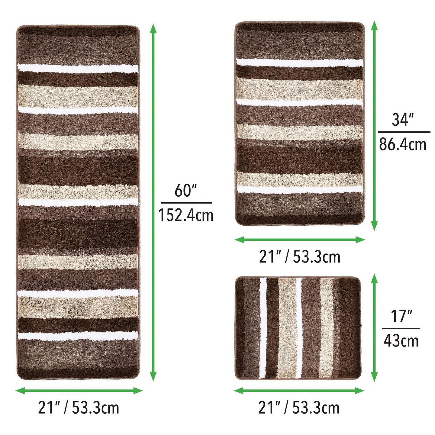 mDesign Striped Microfiber Bathroom Spa Mat Rugs/Runner, Set of 3