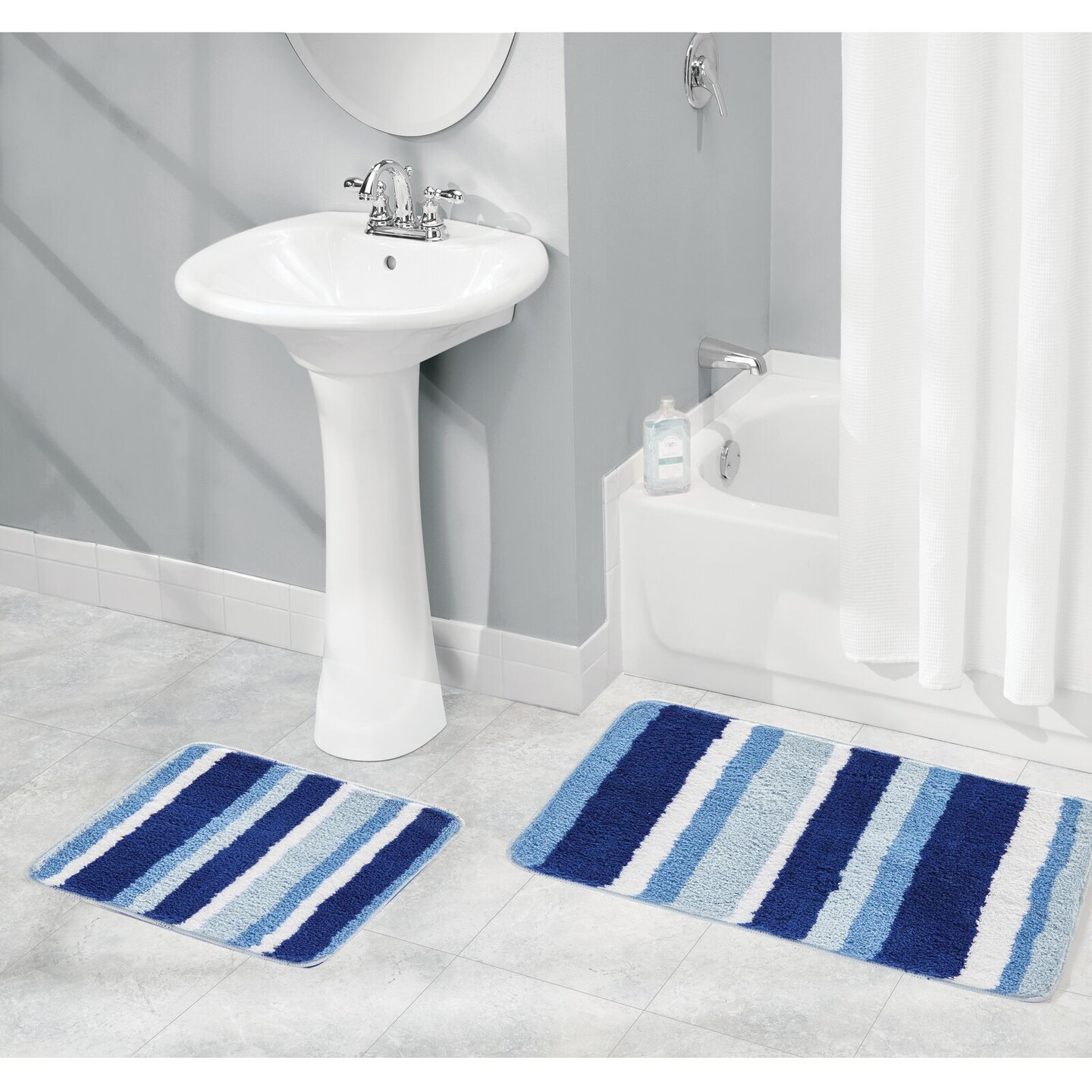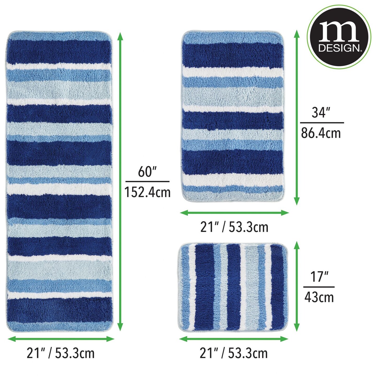 mDesign Striped Microfiber Bathroom Spa Mat Rugs/Runner, Set of 3