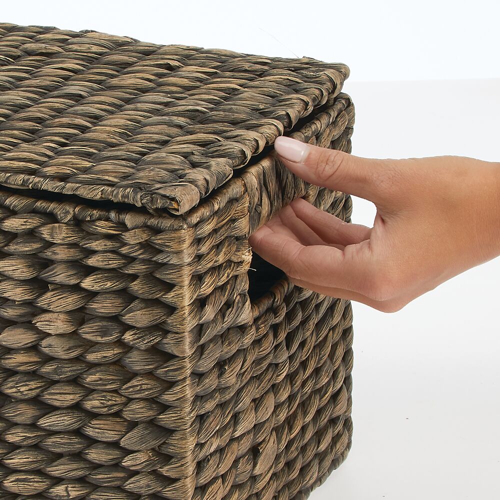 mDesign Woven Water Hyacinth Storage Basket, Lid/Handles, Set of 3