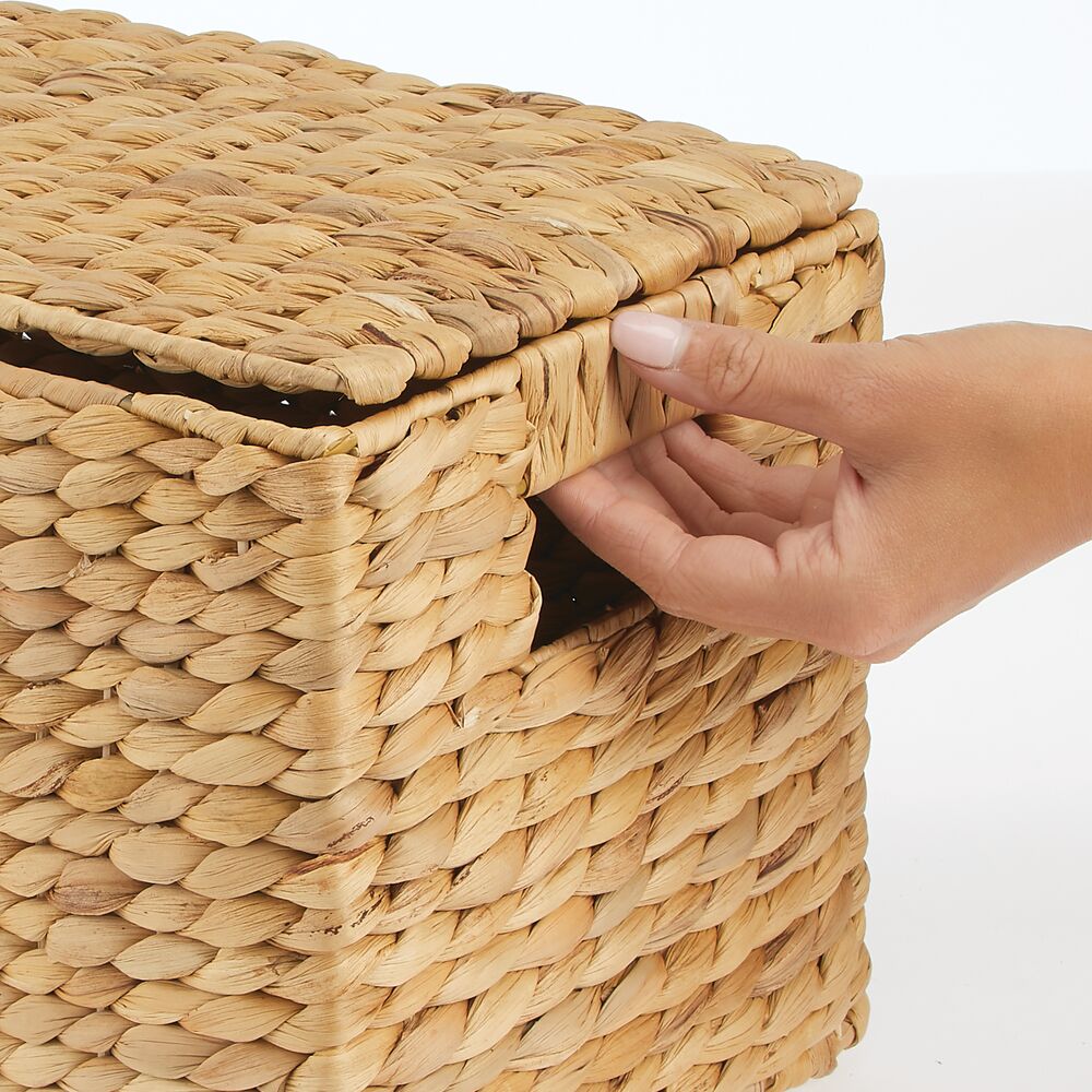 mDesign Woven Water Hyacinth Storage Basket, Lid/Handles, Set of 3