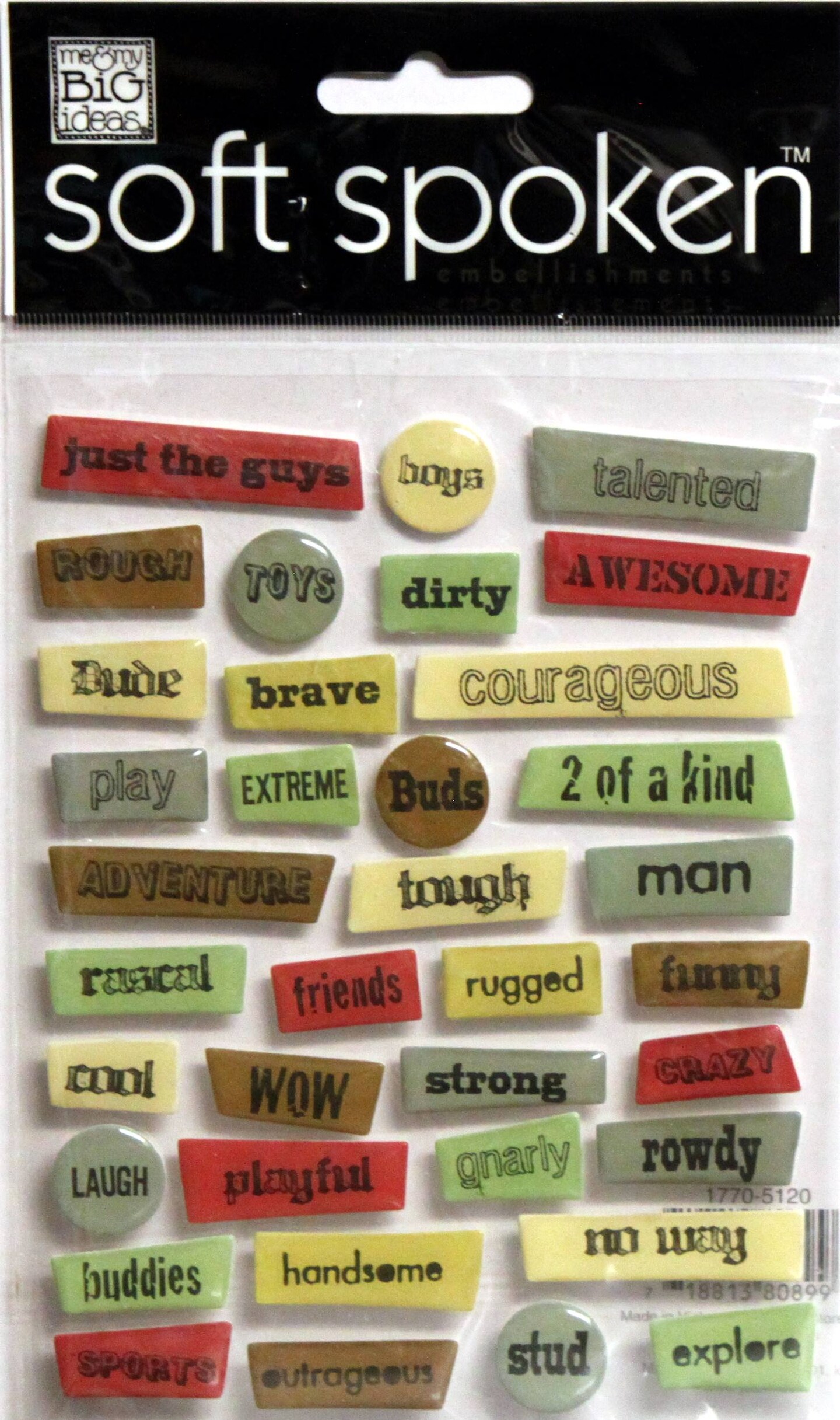Me & My Big Ideas Soft Spoken Boys Pebble Words Dimensional Stickers