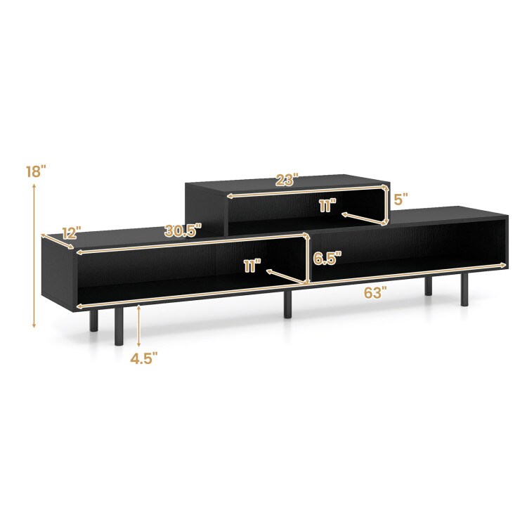 Media Console with 3 Storage Compartments, MDF & Metal Frame, Supports TVs up to 70”