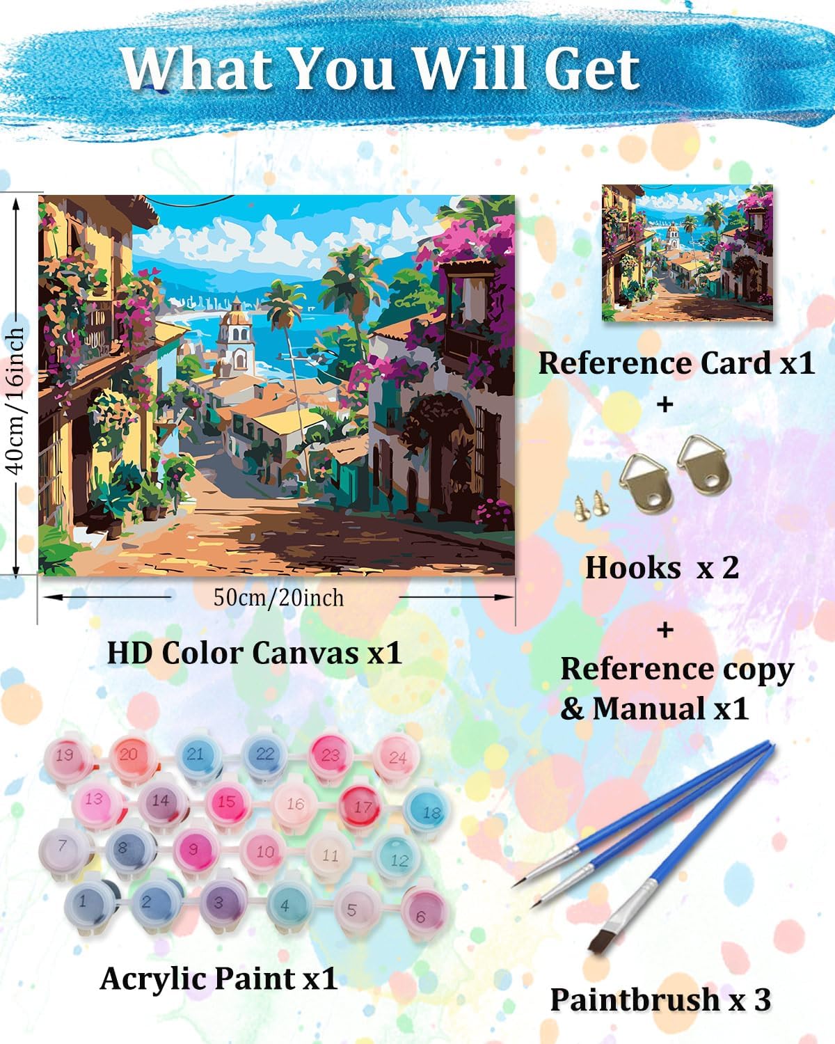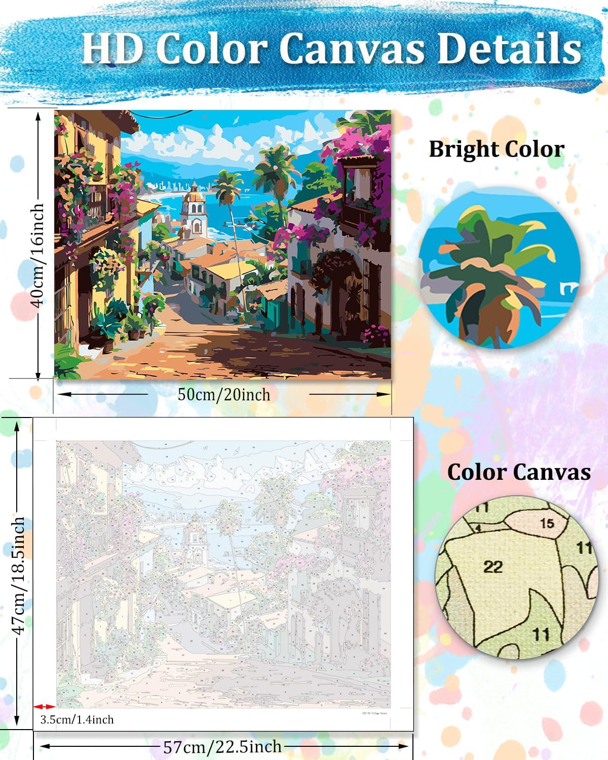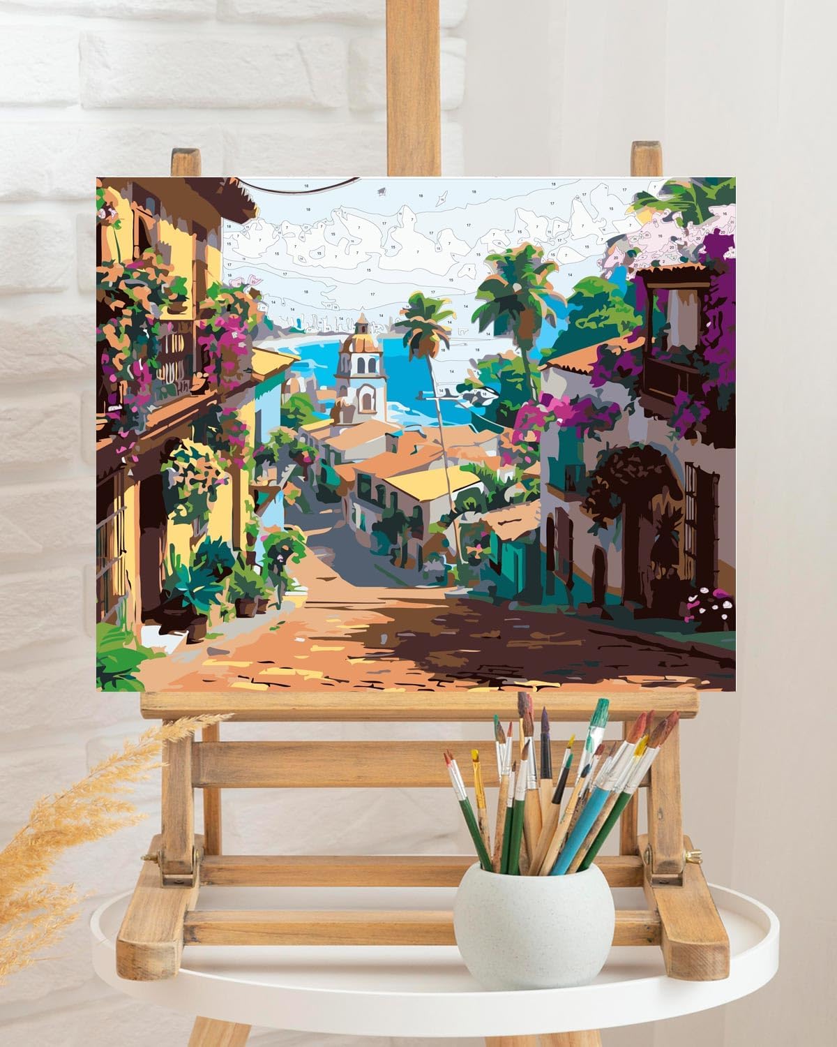 Mediterranean Street Paint by Number Canvas for Audlts (16x20inch)