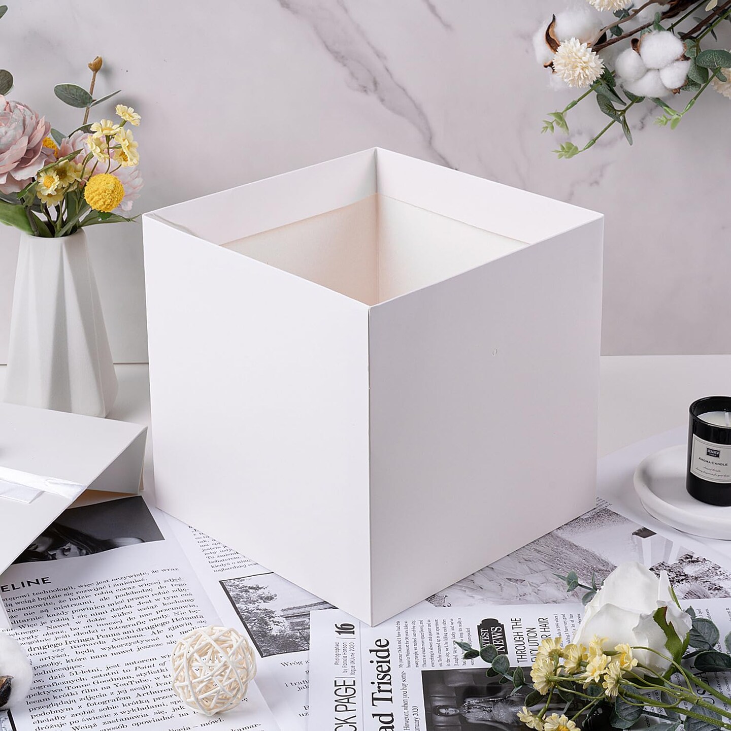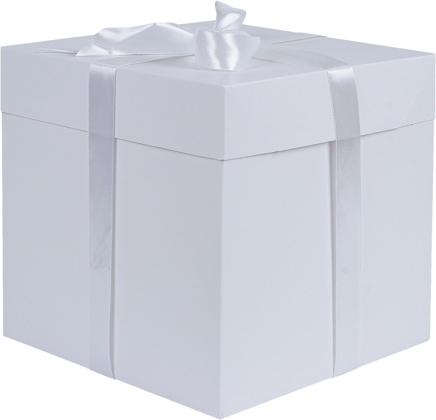Medium Gift Box with Lids, Ribbon and Paper Filler, for Birthdays, Mother's Day, Bridal Showers, Weddings, Baby Showers - Collapsible, 8.7", 1 Pack, White