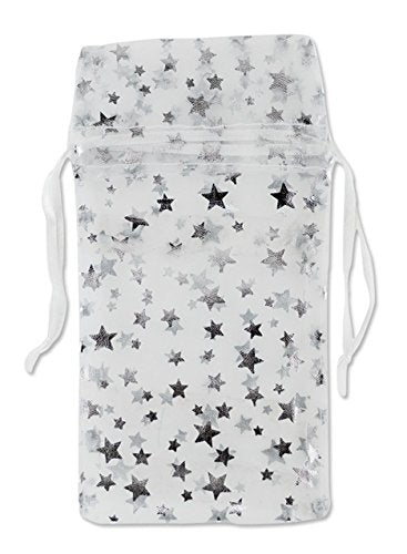 Medium Organza White Pouch with Silver Stars (Package of 12)