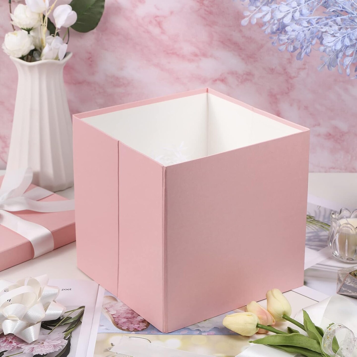 Medium Pink Birthday Gift Box with Lid, Ribbon & Tissue Paper – Collapsible, 9x9x9 Inches – 1 Pack (Pink)