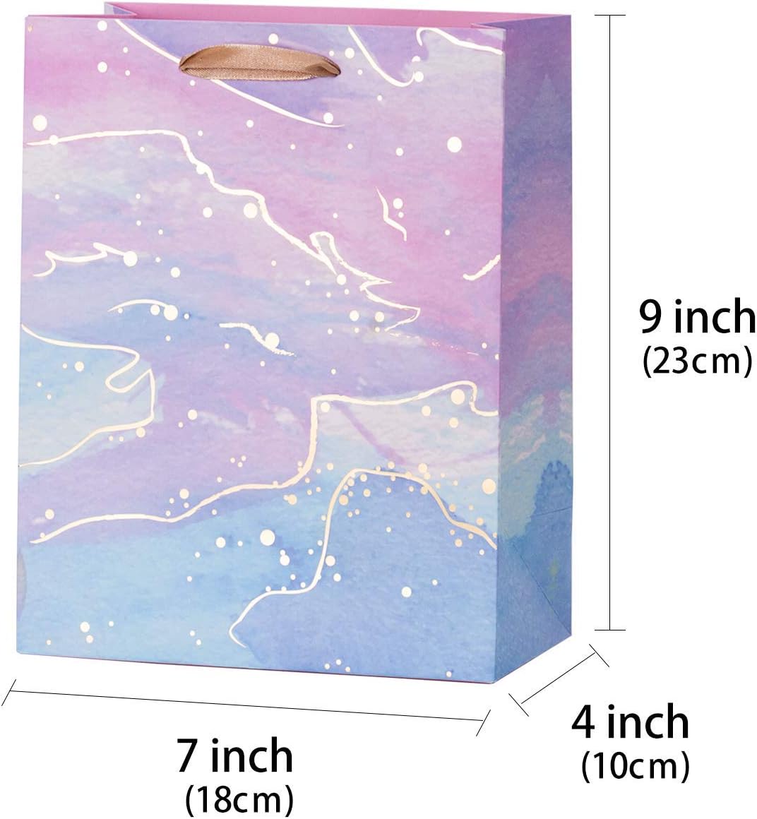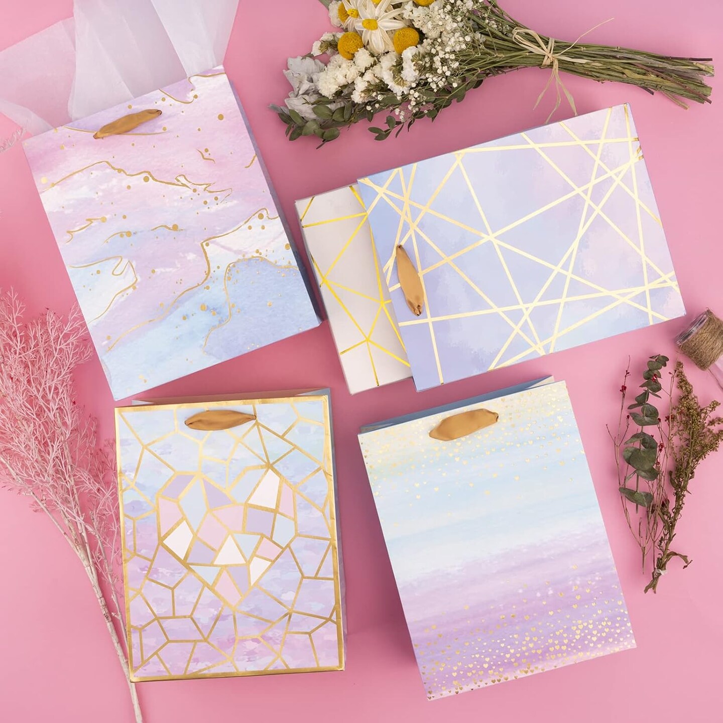 Medium Size Gift Bags-Colorful Marble Pattern Gift Bag with Tissue Paper for Shopping, Parties, Wedding, Baby Shower, Craft-4 Pack-7" X 4" X 9"