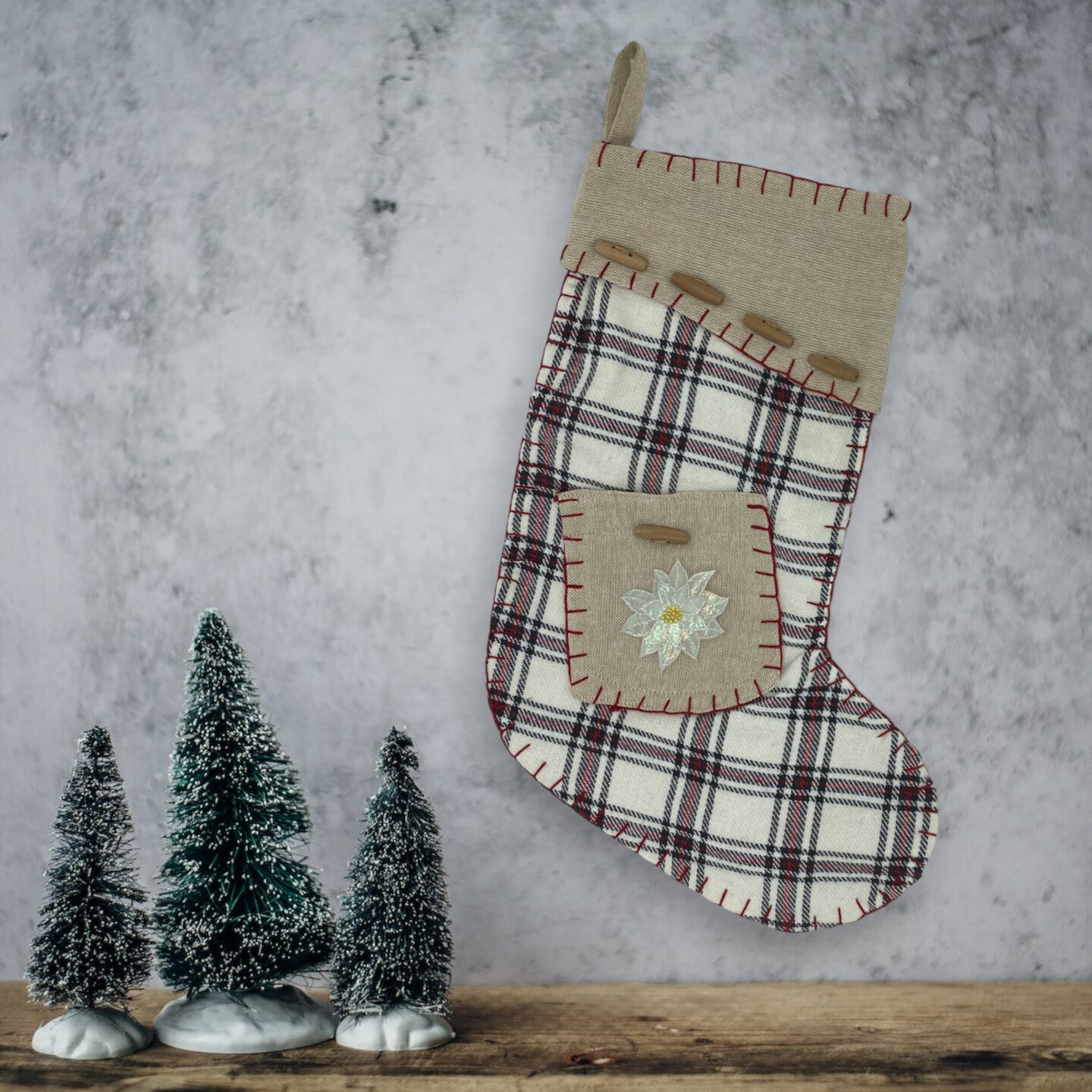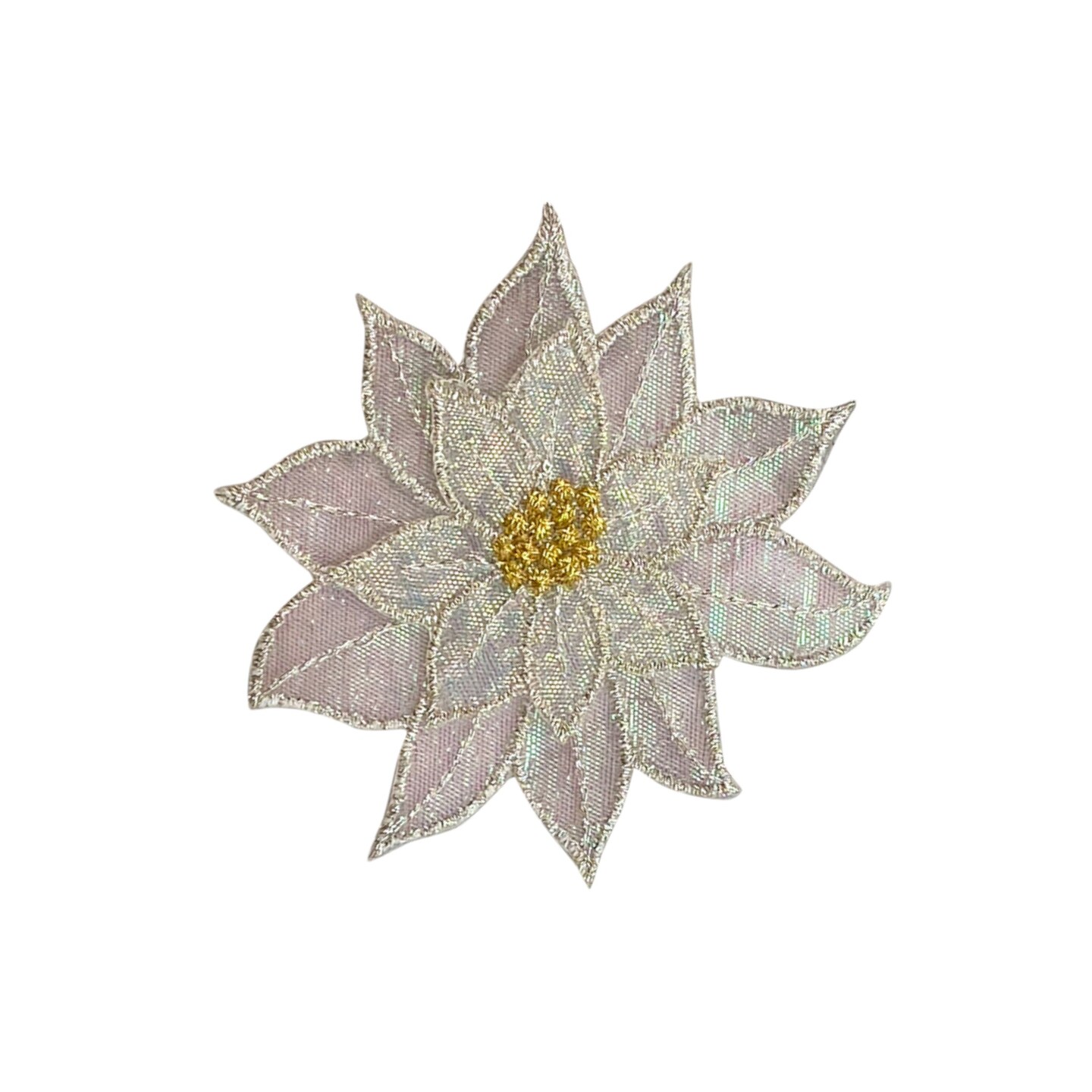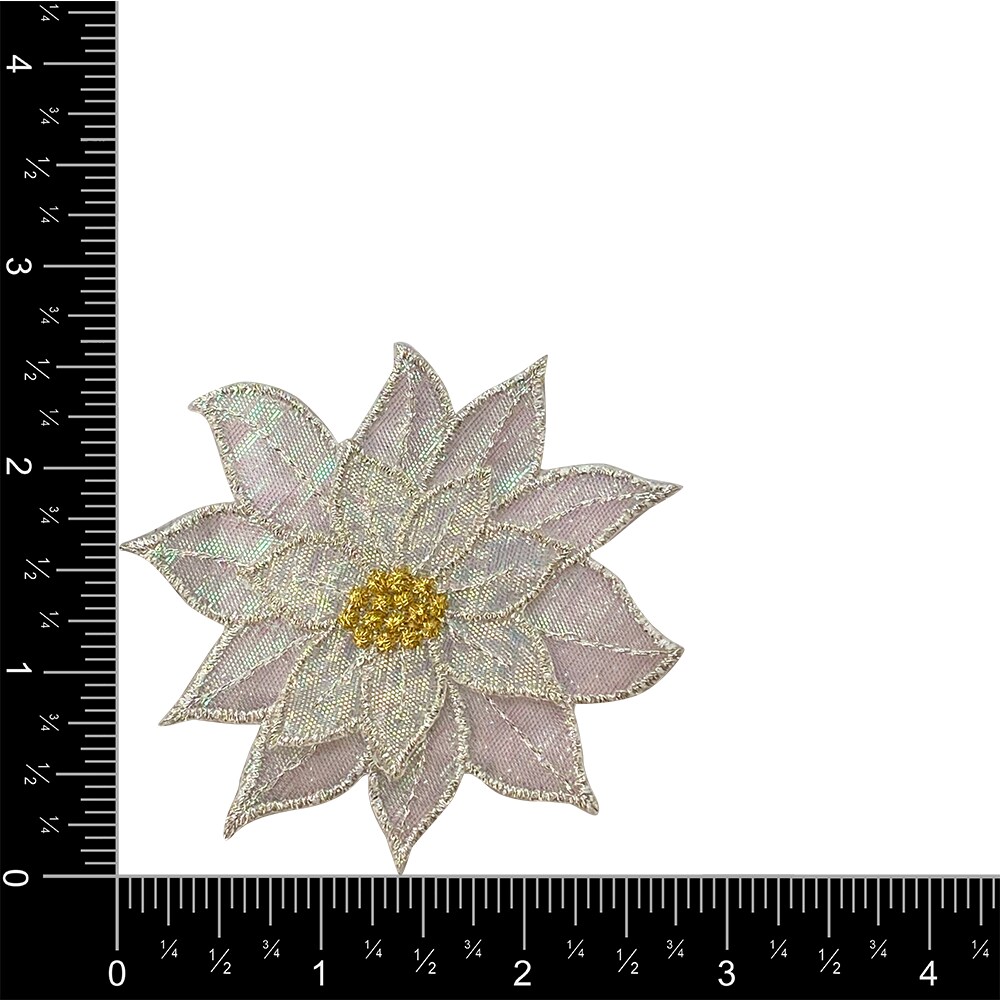 Medium White Poinsettia Embroidered, Iron on Patch