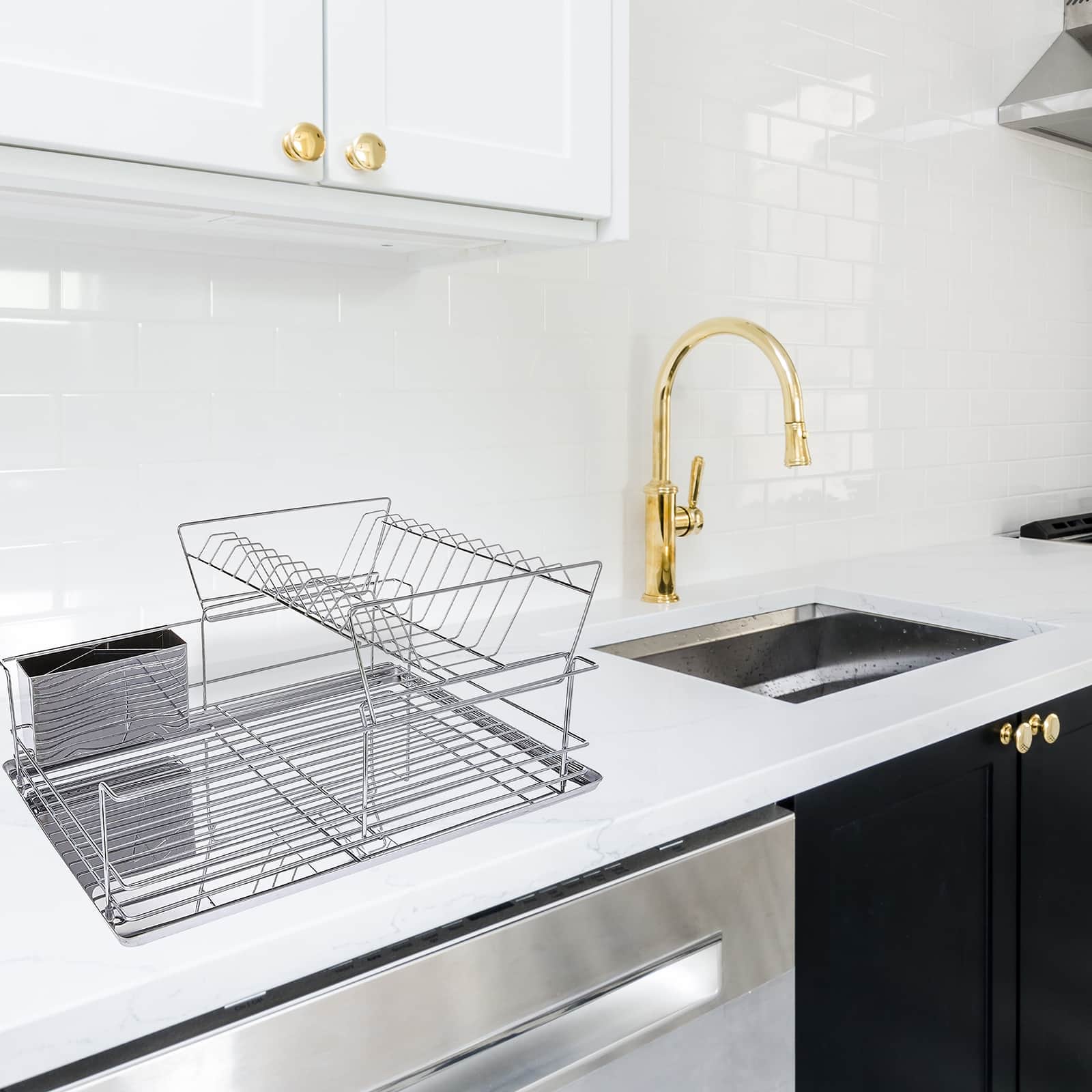 MegaChef 15.5" Stainless Iron Dish Rack with Shelf