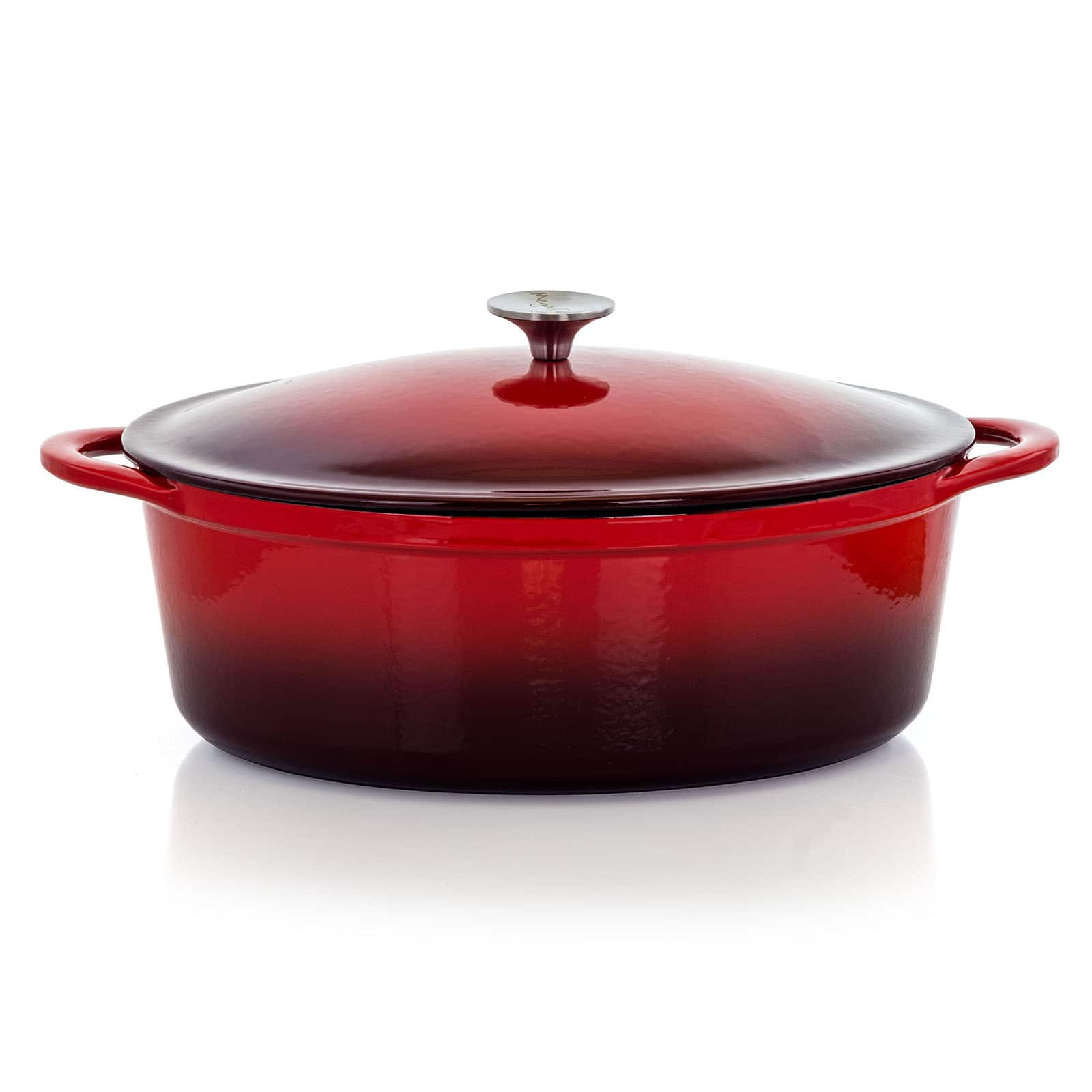 MegaChef 7qt. Red Oval Enameled Cast Iron Casserole