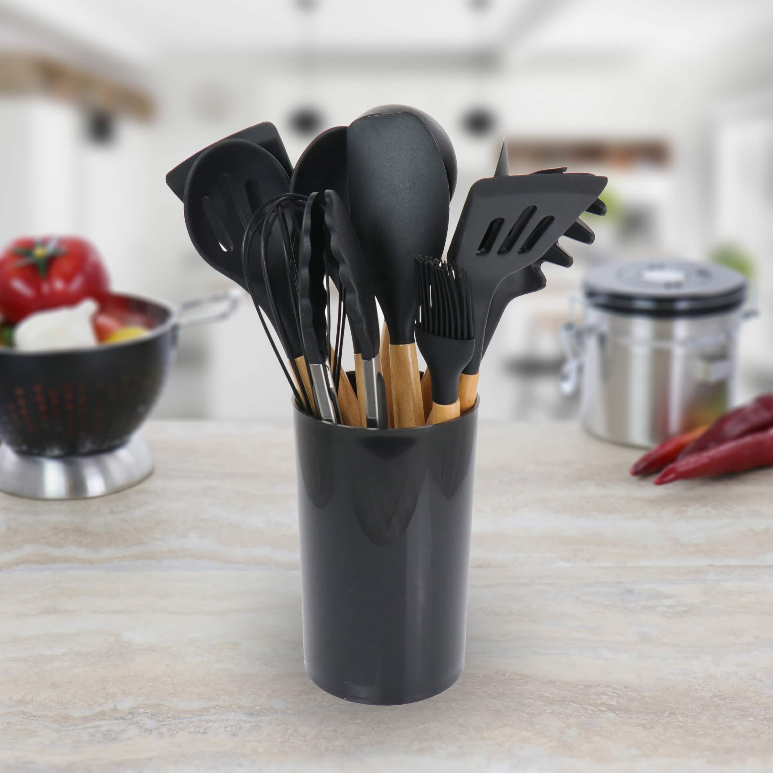 MegaChef Black Silicone & Wood Cooking Utensils Set, 12ct.